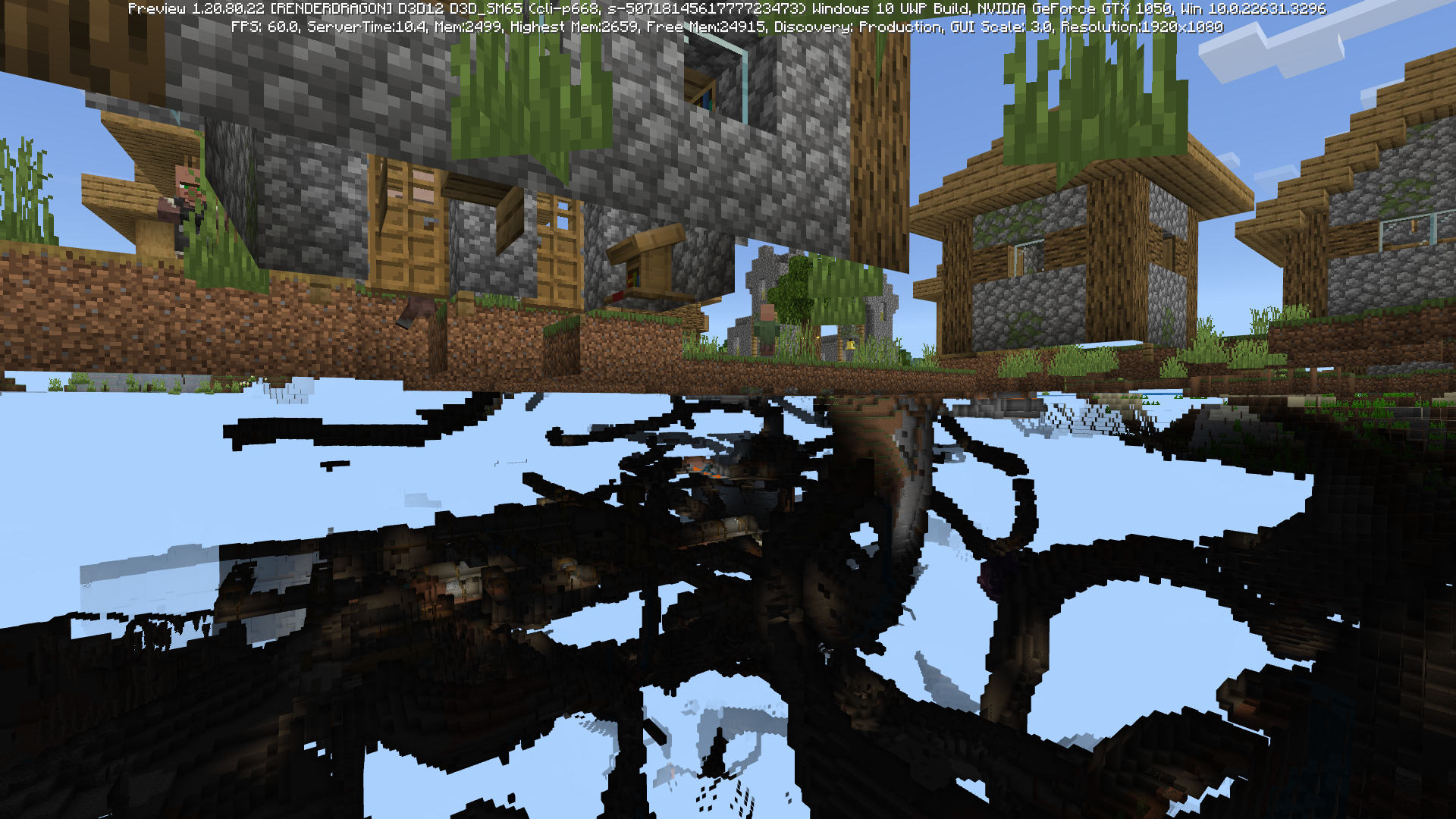 I was playing on a Preview world with the new update experiment(s) turned on and found a village. But when I switched to spectator mode I found, beneath the Village buildings, flat empty spaces with grass blocks placed about every 4 blocks, like a layout grid. There also were those block arrangements on the surface. It seems like those blocks are used for the world-gen Village layout, with each building, and some pathways, having the weird block layout grid sometimes on the surface, or a few blocks beneath the ground.