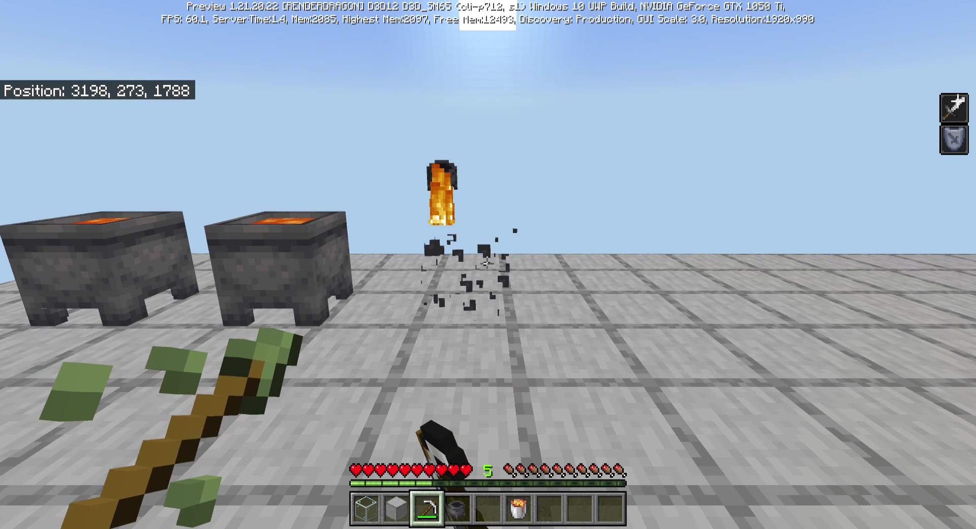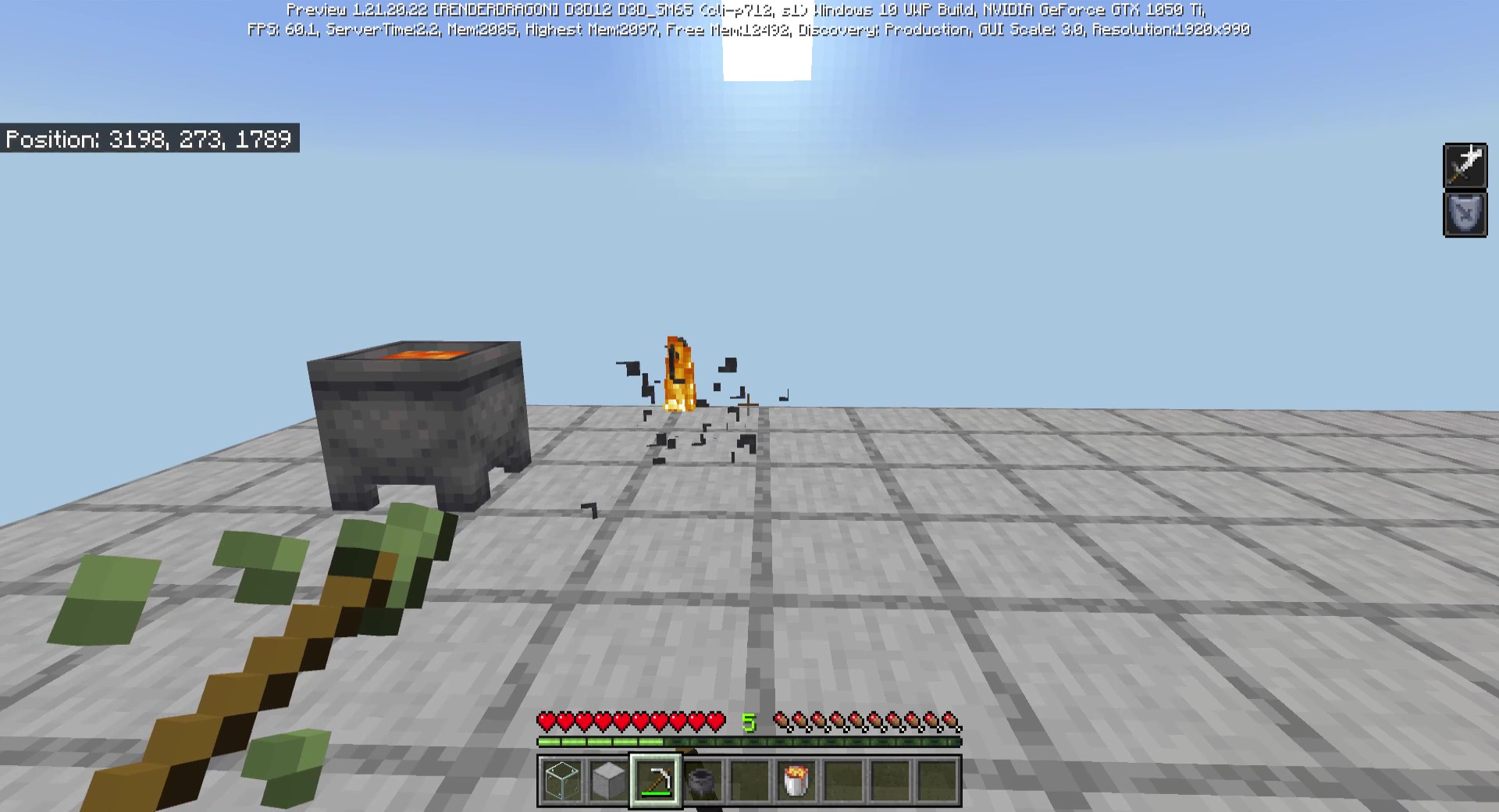 Mine filled cauldron with pick axe (I used an iron one).