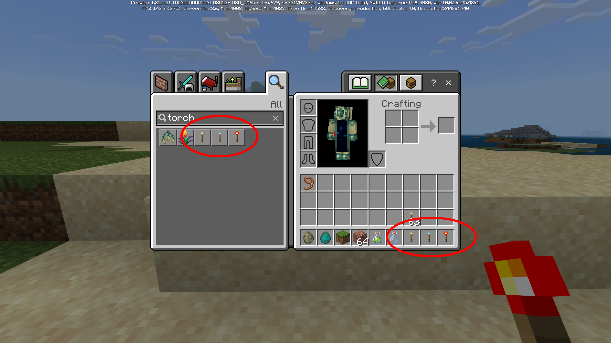 2.) Open the Creative Inventory and search for "Torch".