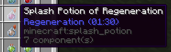 The Splash Potion of Regeneration and Poison has the incorrect durations, with the recent parity changes. Both splash potions on Java have a duration of 1:30, however on Bedrock, it is 2:00, matching the normal bottled potions, but is 30 seconds longer than Java. The best solution is to probably make both the normal bottled and splash potion of regeneration and poison durations of 1:30 as well.