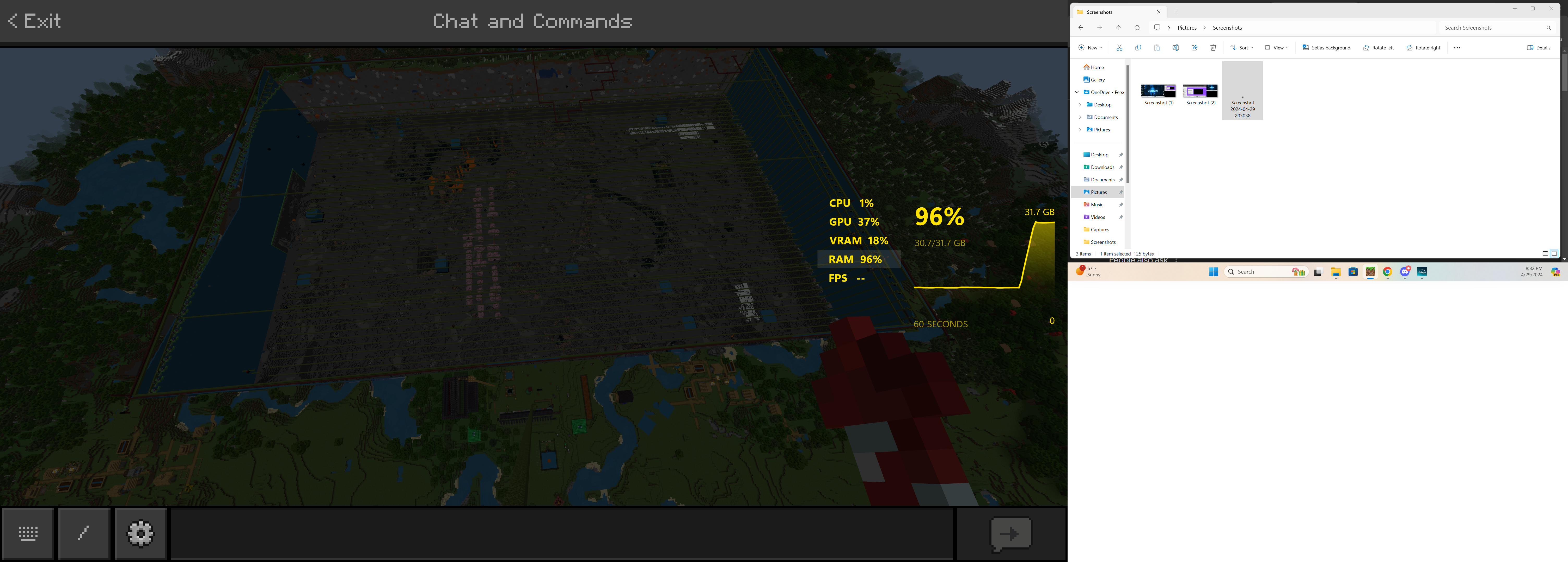 After the 1.20.80 update i notice my RAM surging to 95% of 31.7GB, in single player only. I don't know exactly what all that means but the game becomes jittery and laggy after 5 minutes of playing, and does not drop back down until i close the game entirely, minimizing it drops it too but hen surges right back up (see screen shot) render distance at 50 (recommended and used to be fine). realms seem to only take up 50%