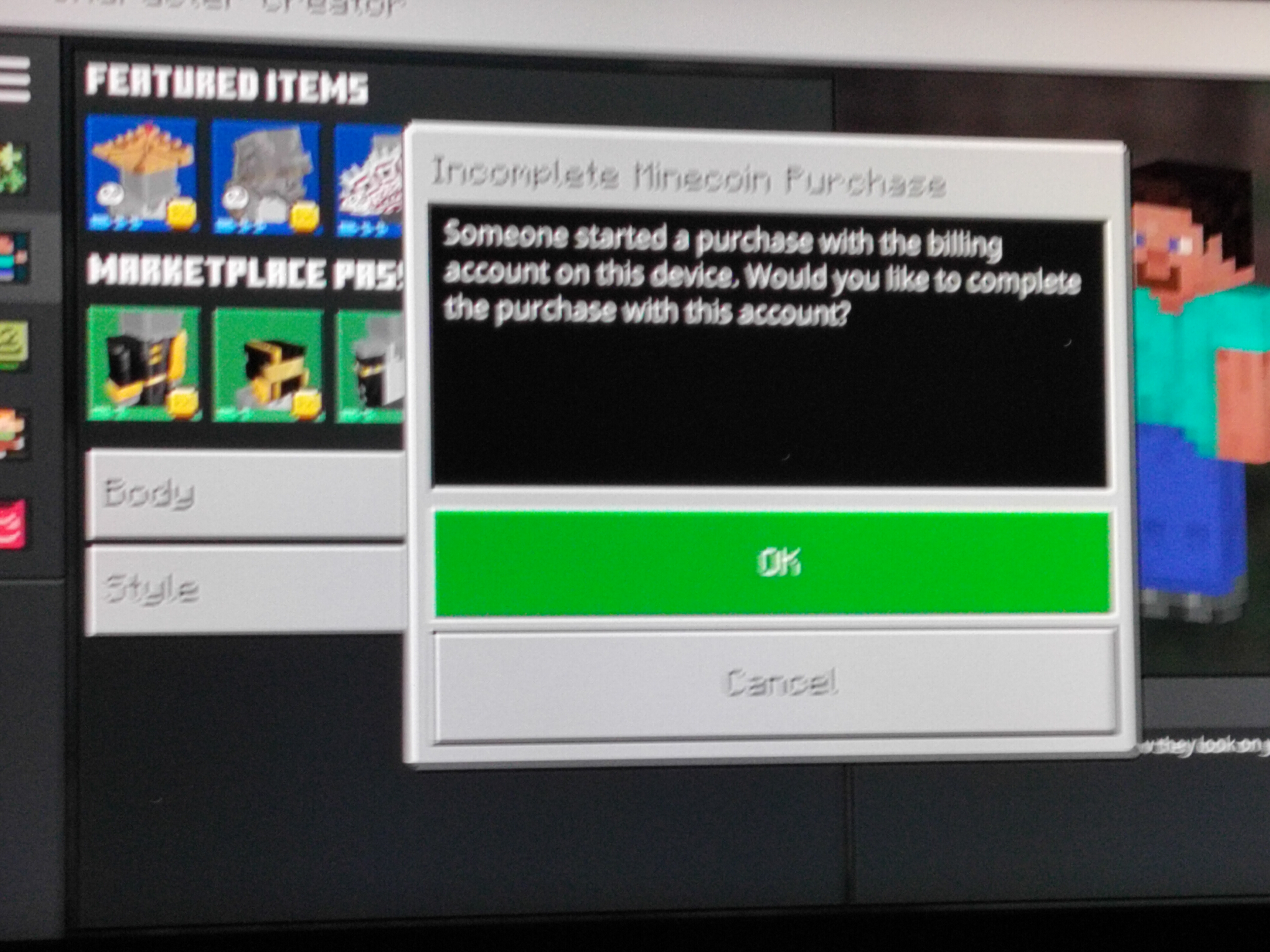 Minecraft Store Issue - Keeps asking me to finish a payment and when I do it either crashes or gets mc coins but nothing happens.