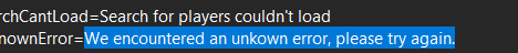 The search for players screen error modal has a typo. "We encountered an unkown error, please try again."