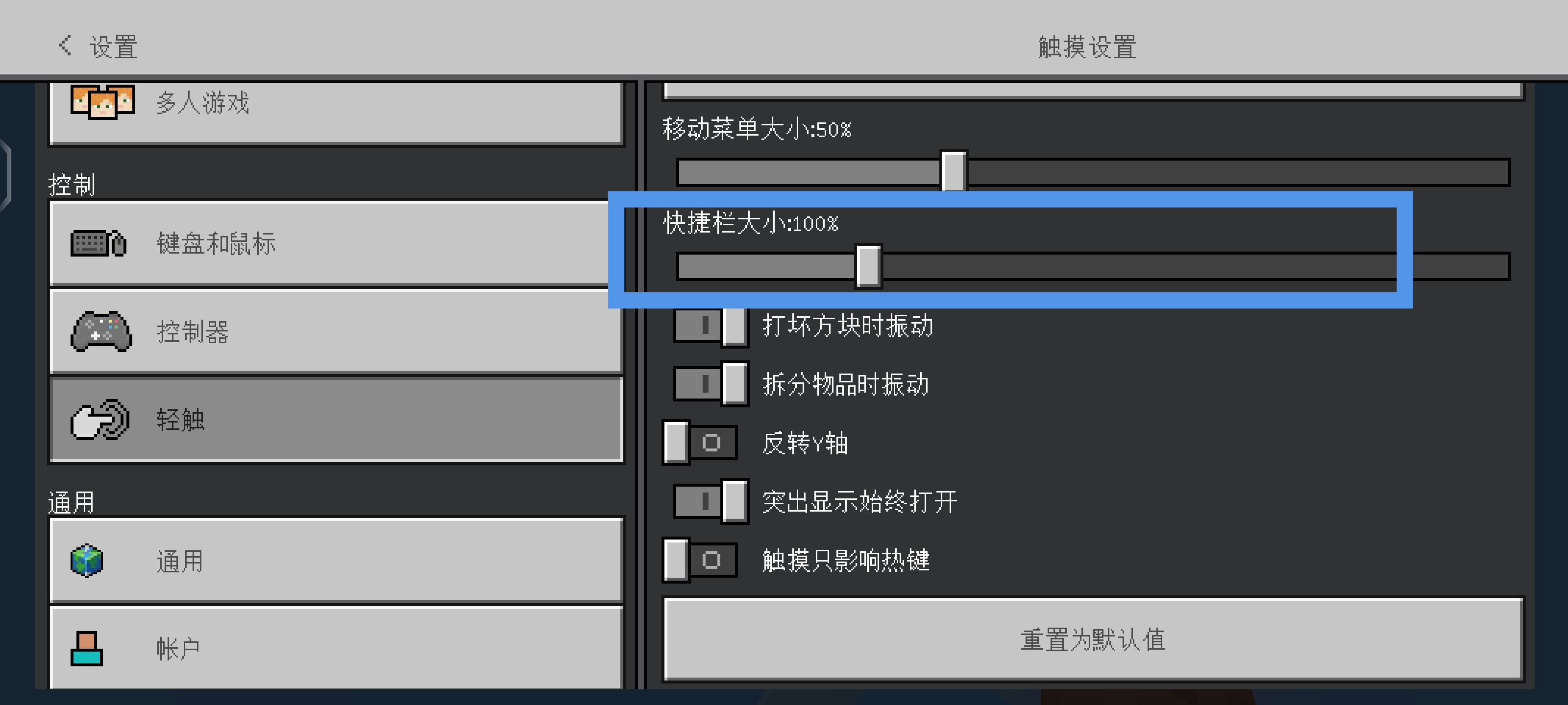 The shortcut bar size function of the touch interface is invalid.This is only available when the custom control is turned on, but it is invalid.After resizing,The shortcut bar size has not changed.