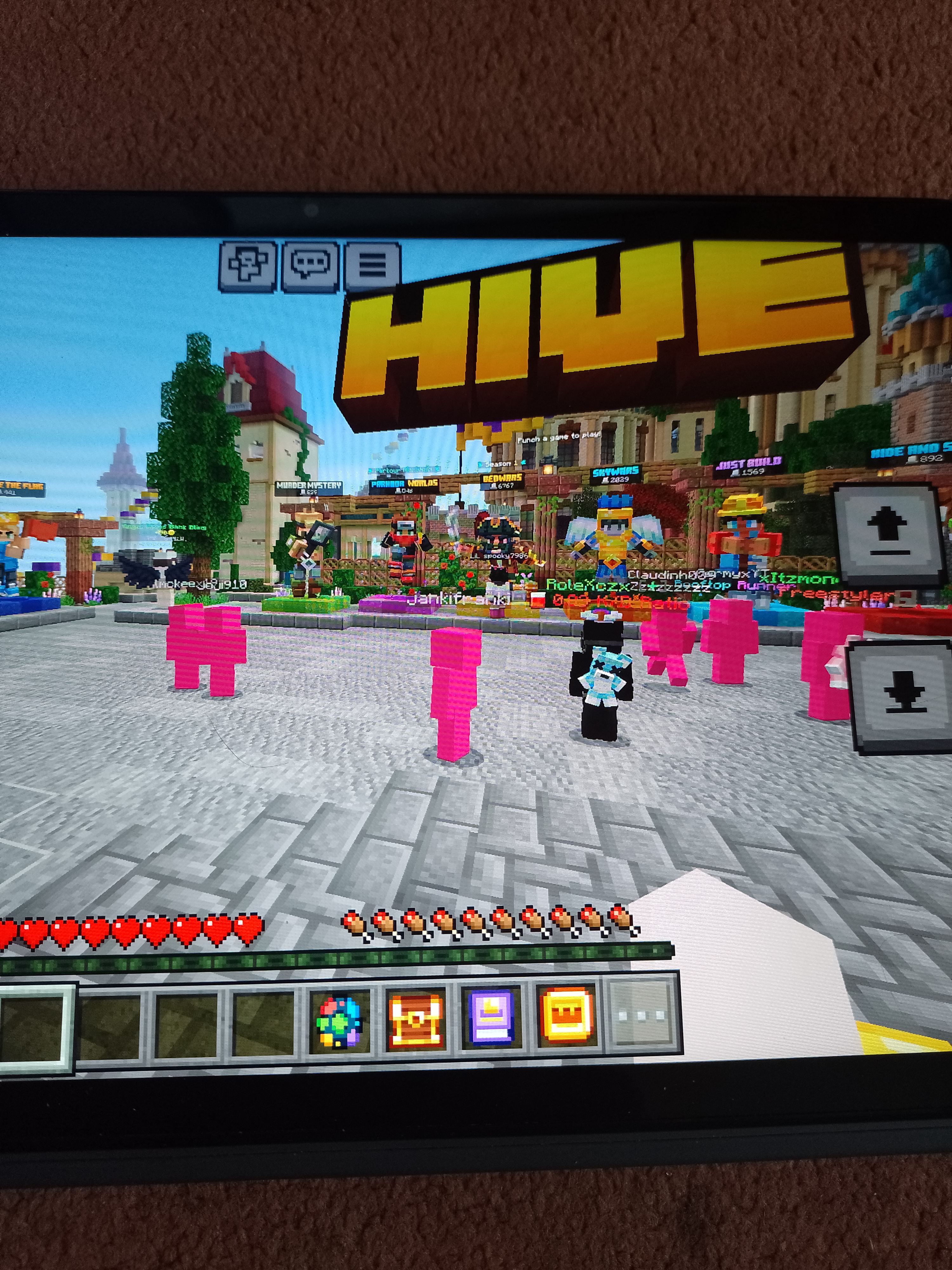 So I was playing on the hive server on Minecraft bedrock edition for like maybe an hour or a half an hour/hour and a half or two hours and then I saw that players was turning pink and when I press the clear marketplace cache some parts of the UI turn pink so it looks like the pink glitch is back.