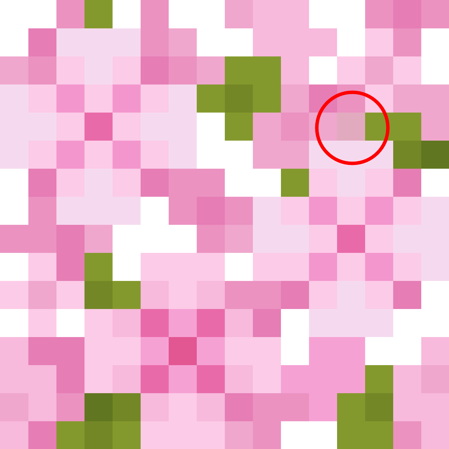 This cherry leaves has expose of 1 slightly miscolored pixel, Which does not matches the rest of color pixels.