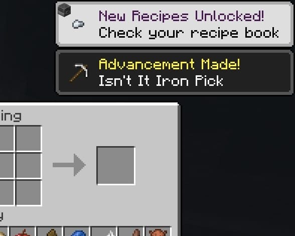 What Is Missing From recipe Unlock pop-ups in bedrock Edition: