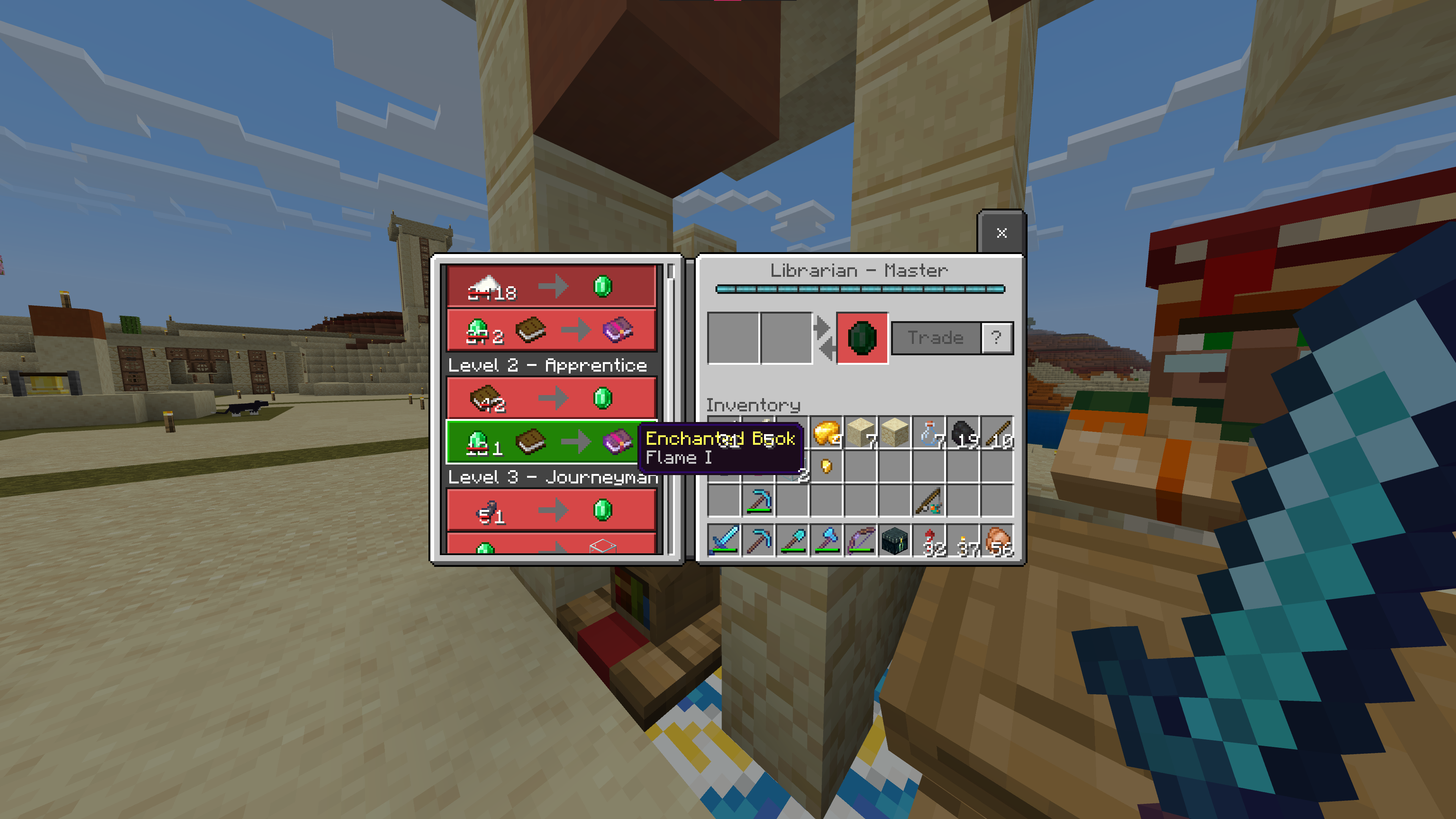 When hovering over a Villager Trade, the number of items in a stack inside the player's inventory is incorrectly displaying over the trade popup. This is probably some simple depth issue.