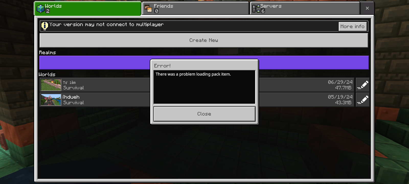 Hello Mojang. I want to know about two things: when will the game add Vietnamese language and secondly, why does this error exist?