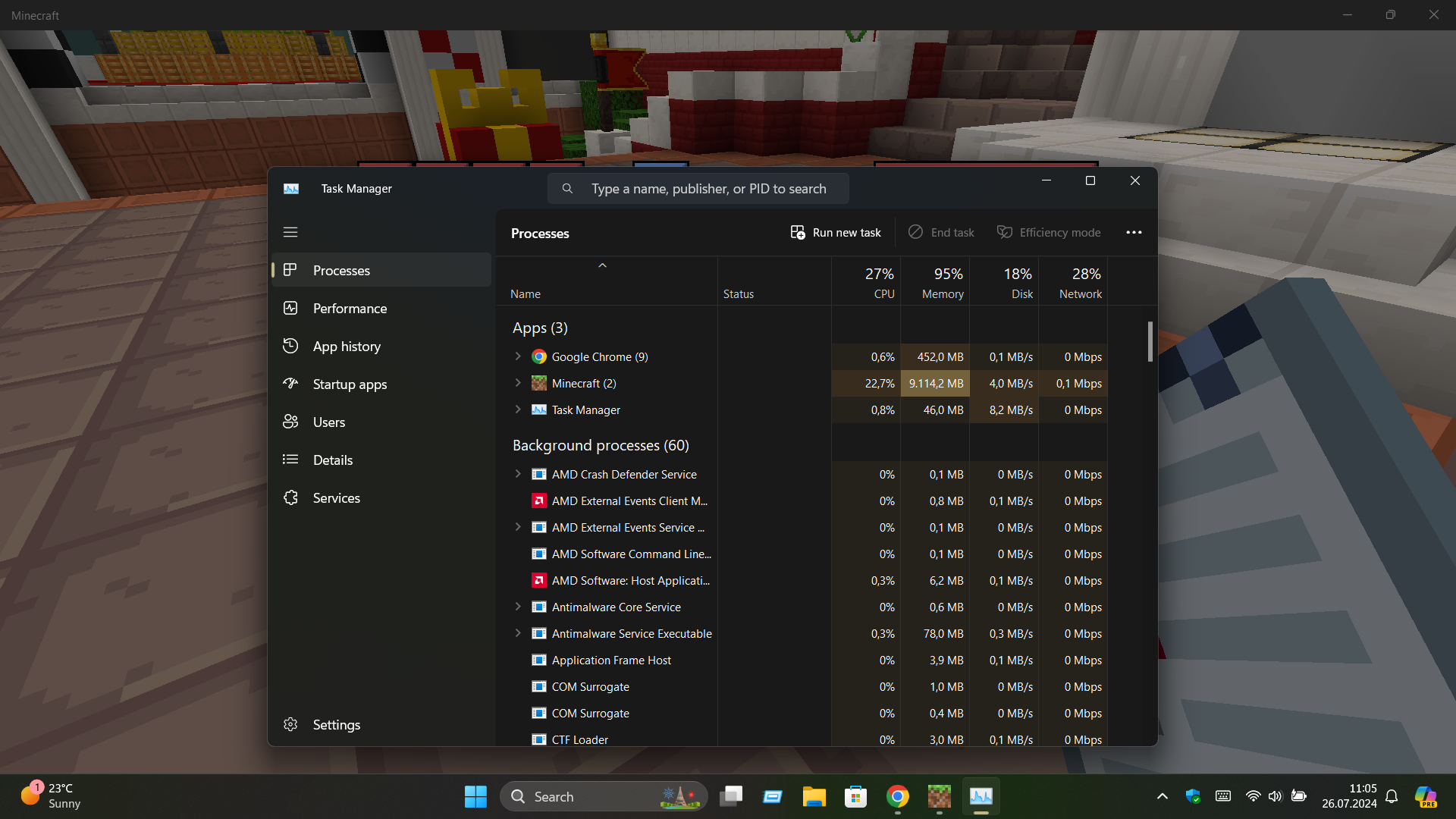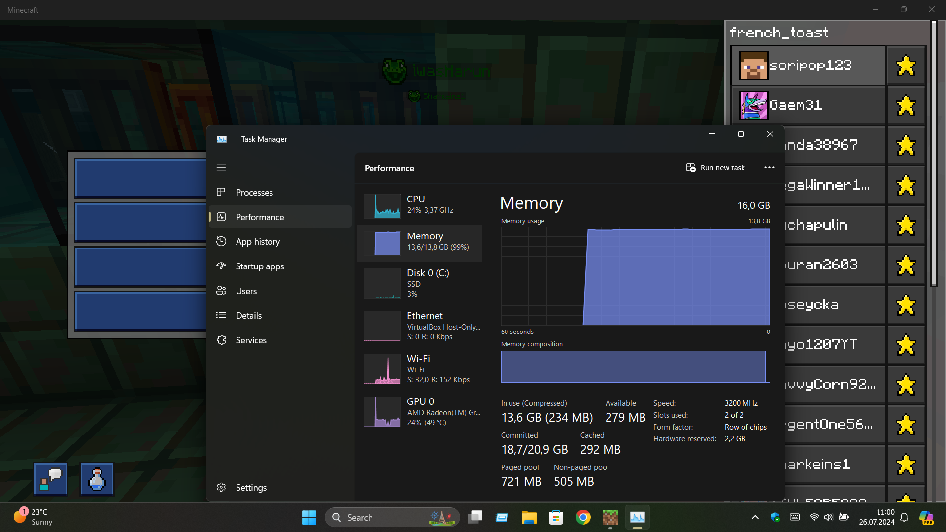 In the photos below is me playing on the new MCC Championship event server but it's not limited to that my old survival world from v1.15 has the same issue RAM goes up and then everything lags out bad.