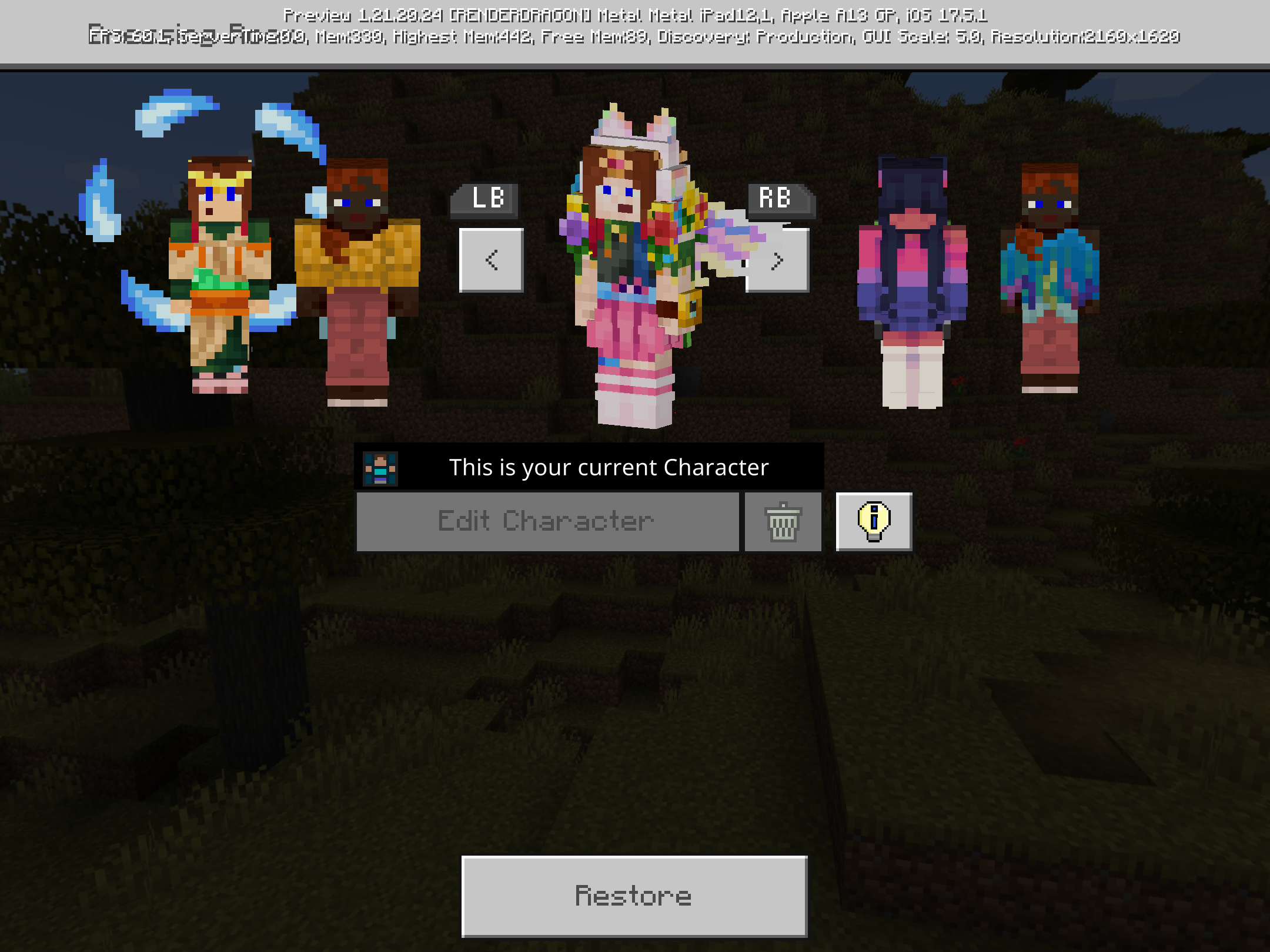 Character Creator the skin can change its some parts to different color, clothes and hair or be bald and be different from the character in the Minecraft release 1.21.2