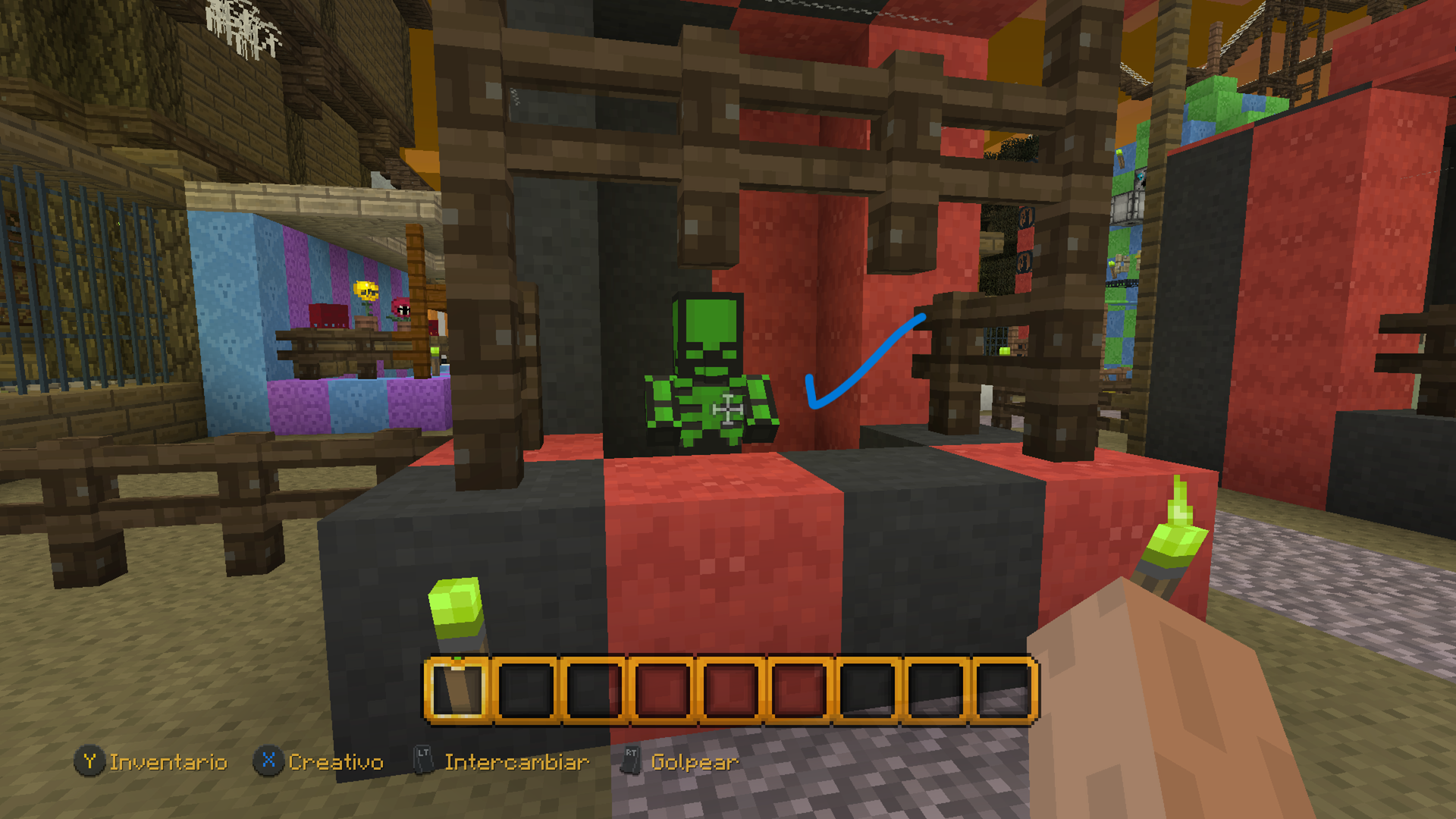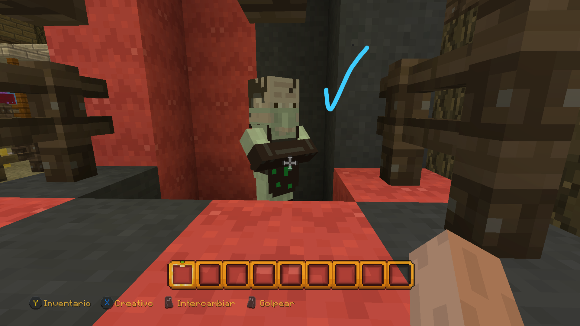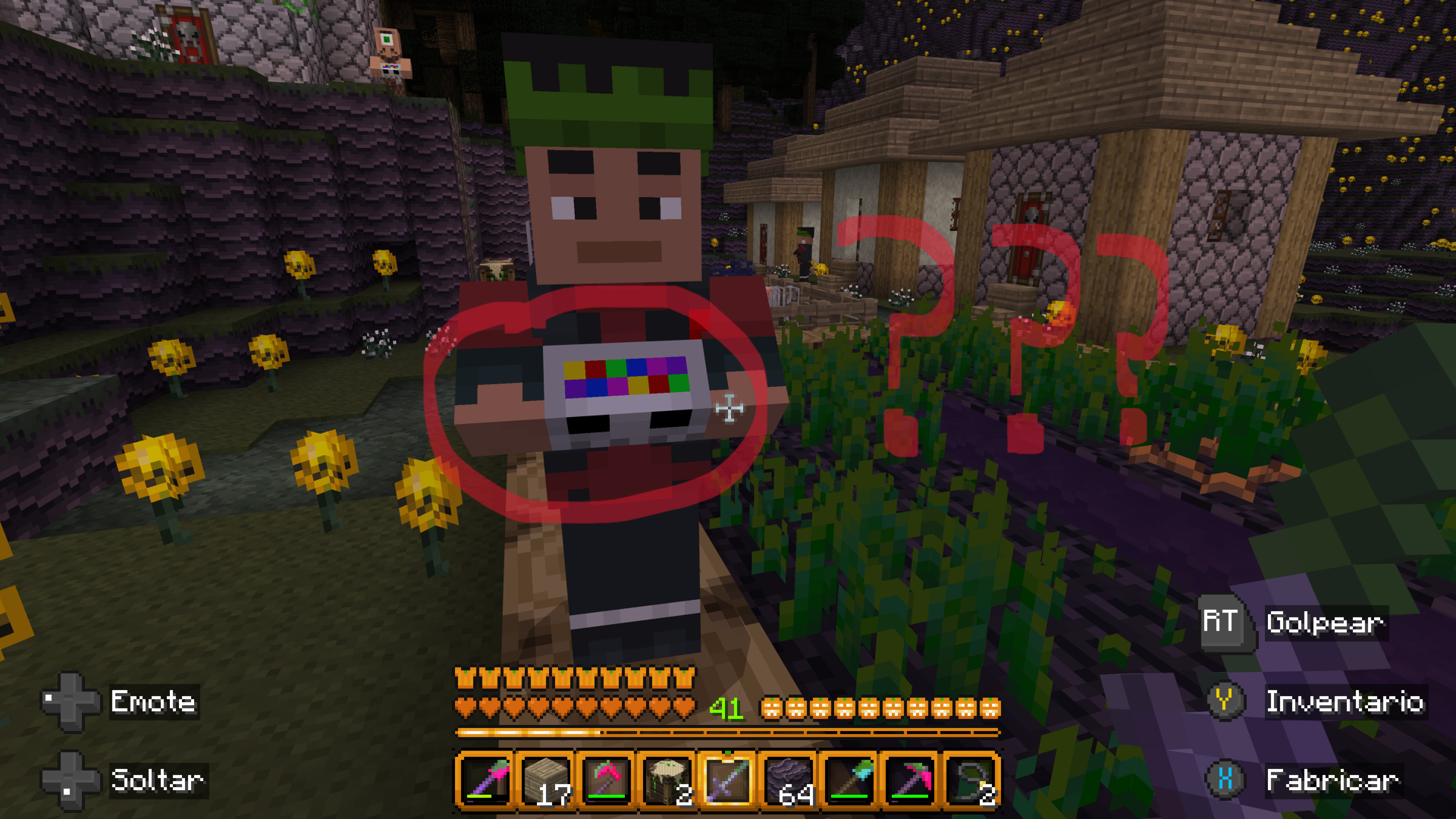 I post two images showing a villager from minecraft console edition with normal textures on his hands, while in bedrock I post an image showing that he has bad textures on his hands. All this happens in the halloween mash up pack.