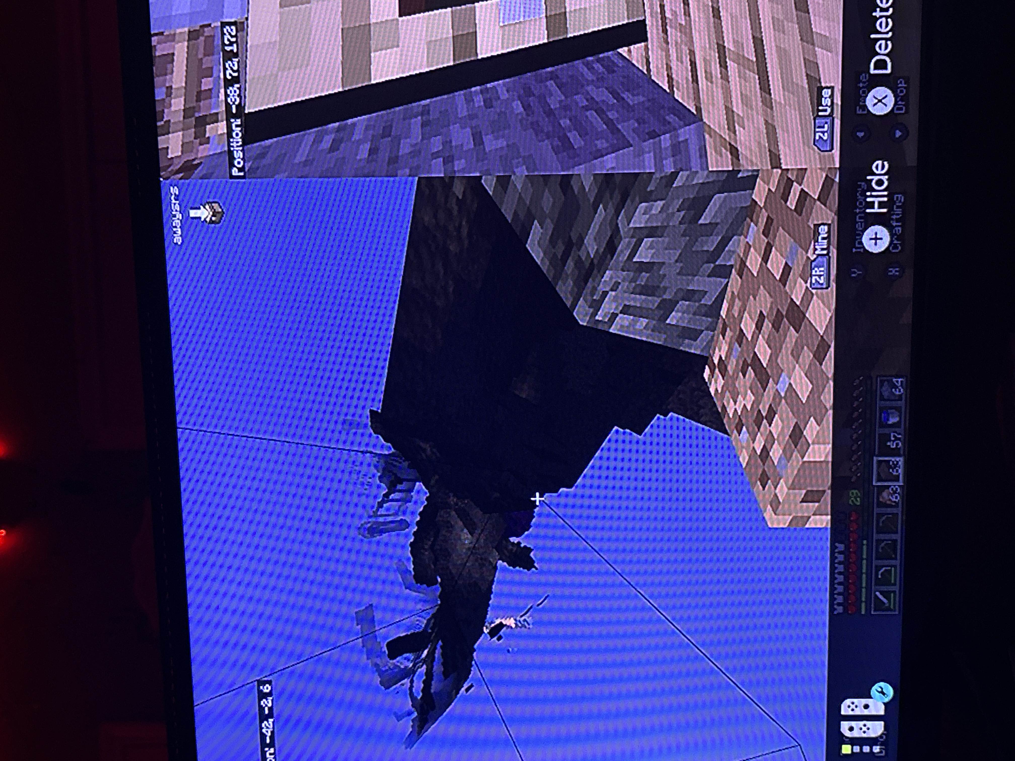 The game autosaves every two minutes and sometimes twice within one minute. The game lags so bad that i cant do anything. When mining, the blocks will not disappear, and when i walk inside the blocks it does some x-ray thing. Chests wont open or load, neither will inventory, furnaces, crafting table, anything like that. It wont even let you open the settings while its autosaving. The way to replicate this is to just wait for it to autosave, then start trying to do ANYTHING. The pictures i included just show the x-ray thing, but when you open a chest it will either show a loading sign or just keep the screen as it is and let you move around but not do anything else until it decides to open. Same for opening settings. The only other thing that could contribute to the lag is the animals in my farm, but the game works perfectly fine and does not lag at all when its not autosaving. If it wasn’t happening so often it wouldnt bother me so much, but like i said, it happens every one to two minutes and its about thirty seconds to a minute that the game is just unplayable.