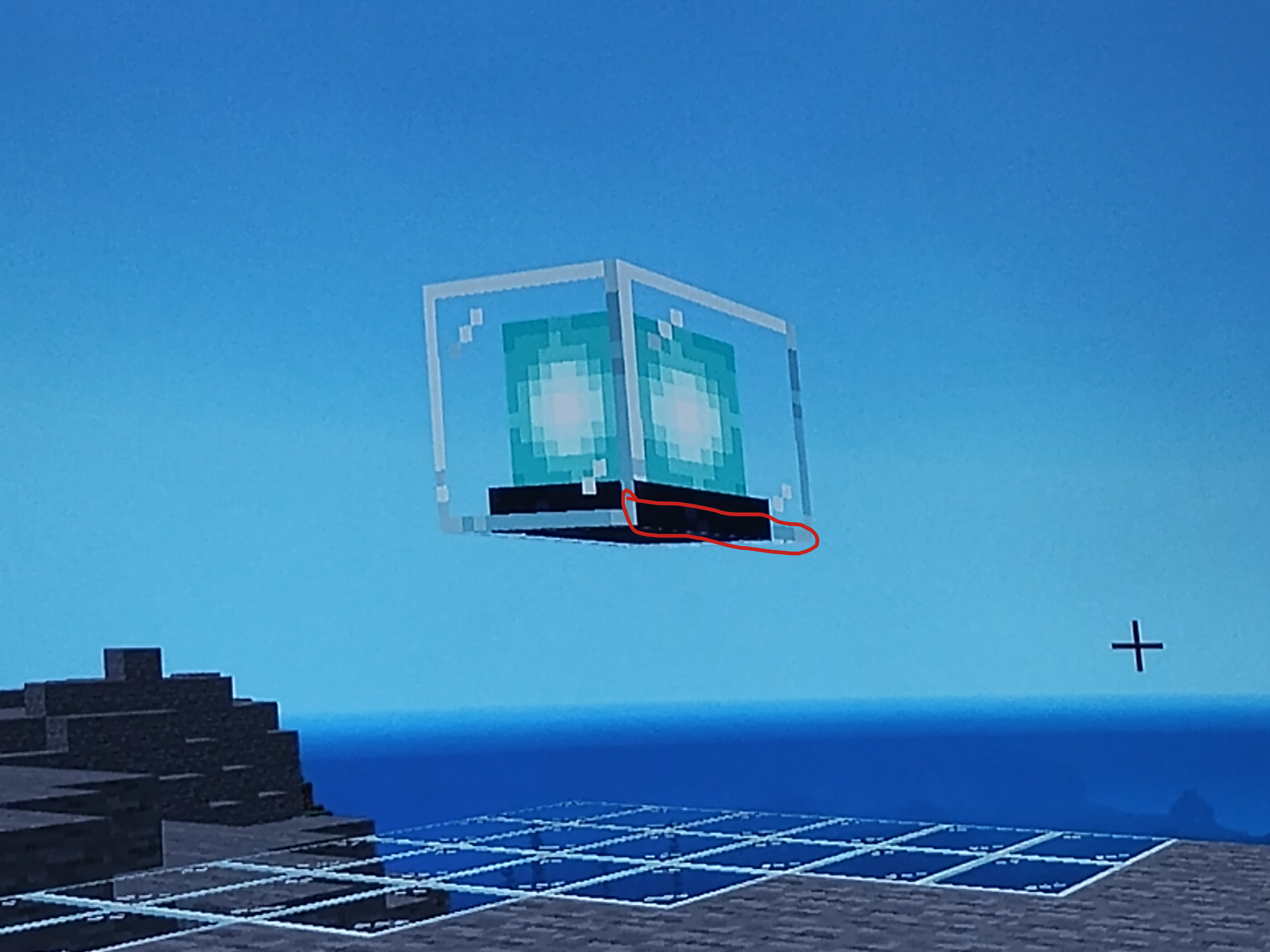 When looking at a Beacon that is in the air, from the bottom of it, the lines for the glass part go behind the obsidian.