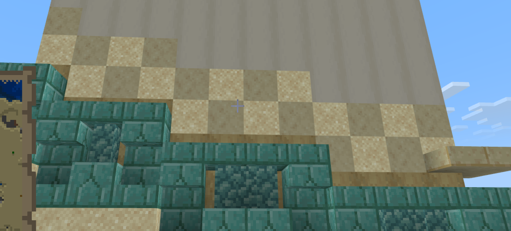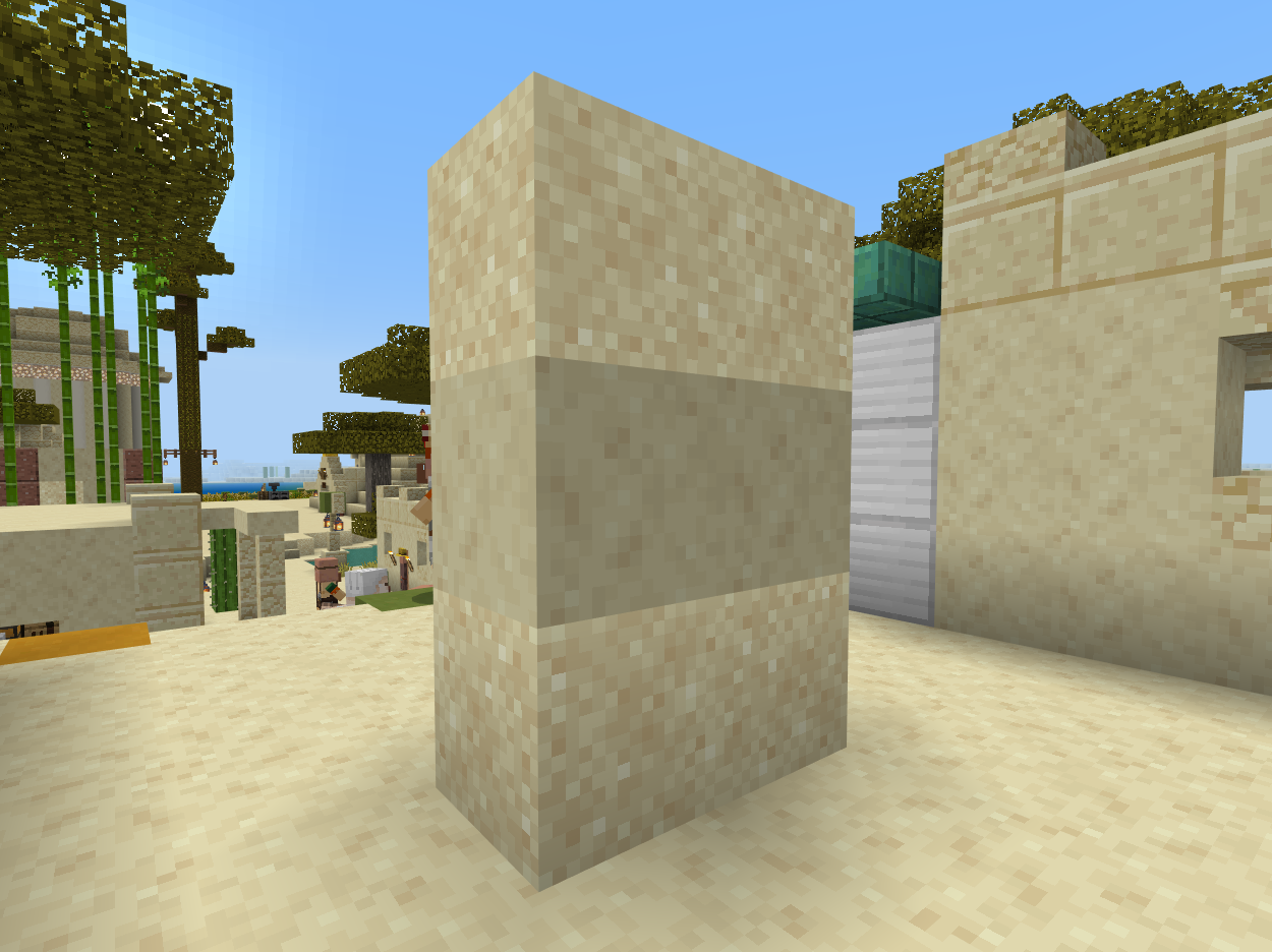 Right after the 1.21.20 update release, I noticed a change in the light falling on sandstone blocks. The light on whole blocks started to look as if they were merged slabs, resulting in a much darker colour, compared to sand (first three photos).