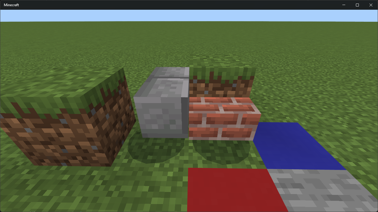 The default entity (brick placed low) is facing the south side of the model. The "rotated" variant (stone brick placed high) is also facing the south side.