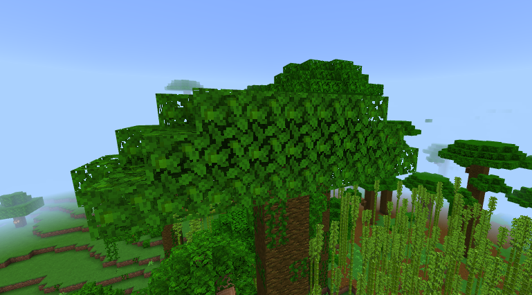 Then, after complete these steps, sometimes you can get some cut trees. I used this method in the seed Tree and in the coords: 1354, 98, -1620, I got 2 tall jungle trees cut a bit near these coords. The screenshots of these trees are in the attachments of this report. And I even got a piece of a tree floating in the sky.