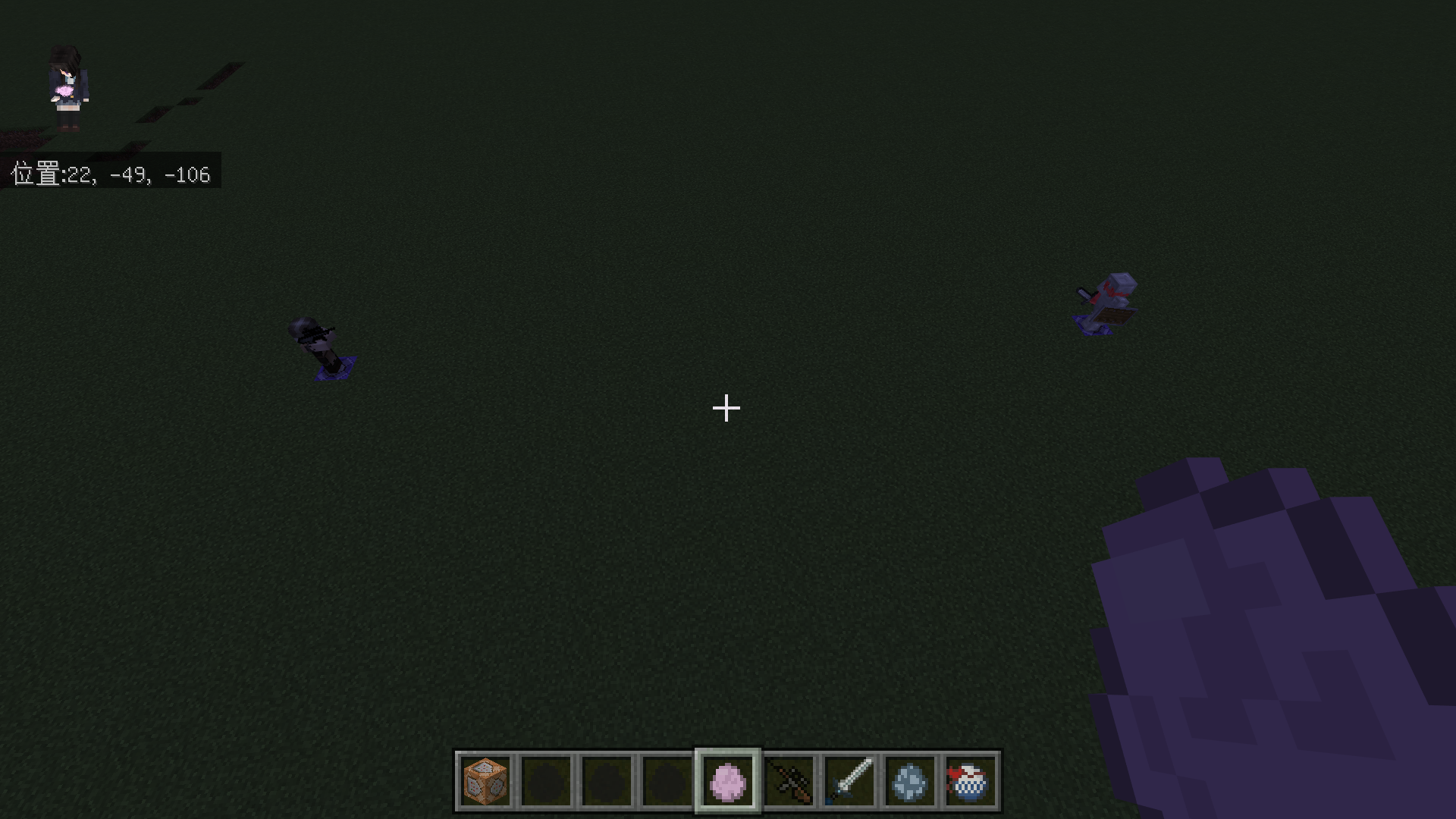 Spawn a villager on the block labelled "Z = 22".