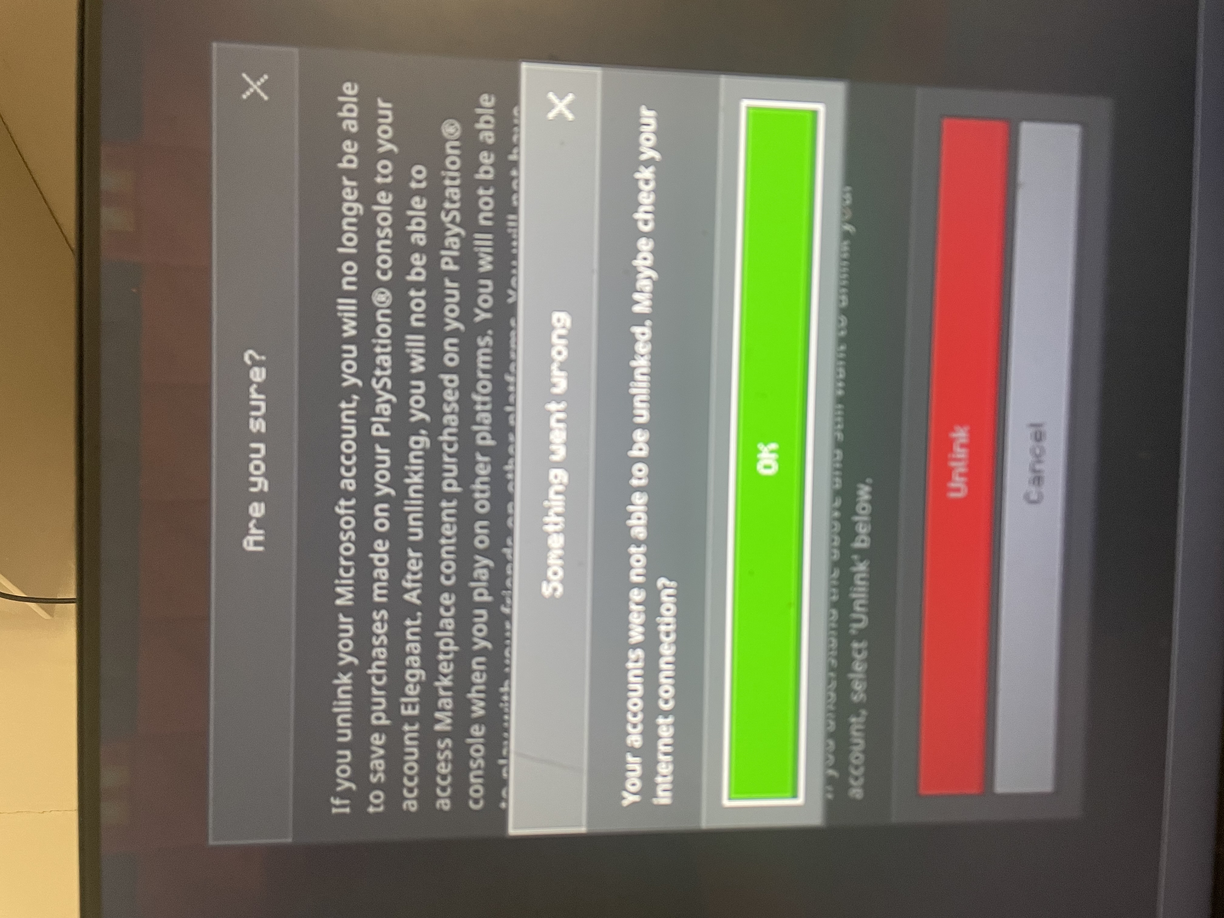 When trying to unlink Xbox account from PS account it says that there is a network issue however upon deleting the game resetting restarting the internet and done many tests it is not an internet issue and is just preventing the unlink processΒ