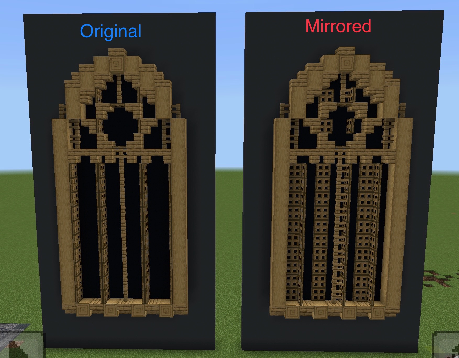 When mirroring or rotating opened trapdoors using a structure block, they will not be mirrored or rotated correctly. This means that if you open a trapdoor in a certain direction and then mirror it it will now not be opened in the mirrored direction but instead will be opened in a completely different direction.