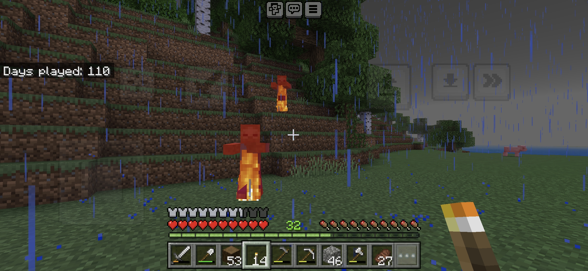 This was observed when it appears to be raining but endermen weren't taking damage and undead mobs were burning (confirming that the weather is clear)