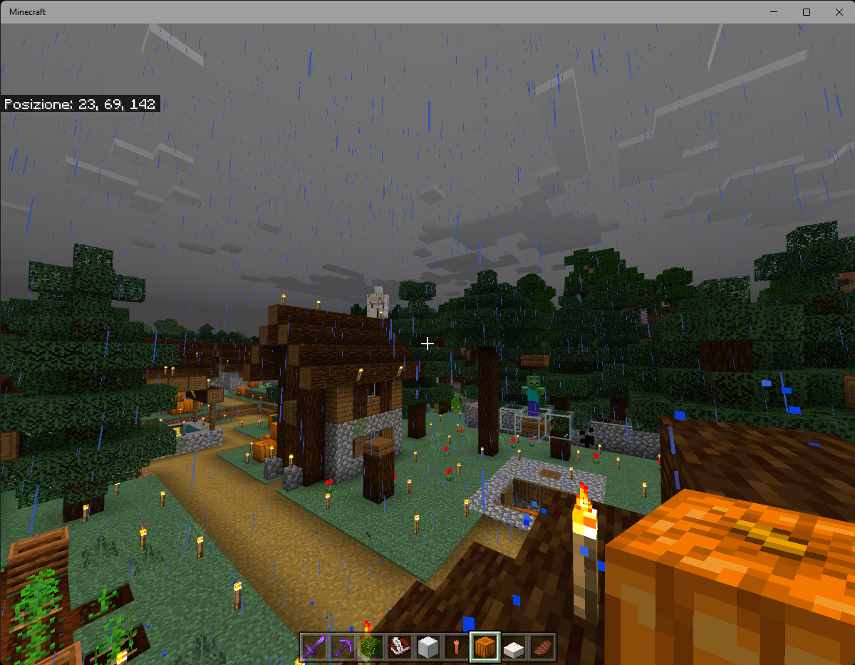 In taiga village the Iron Golems and cats are trapped on the rooftops. The golems cannot come down and protect the villagers.