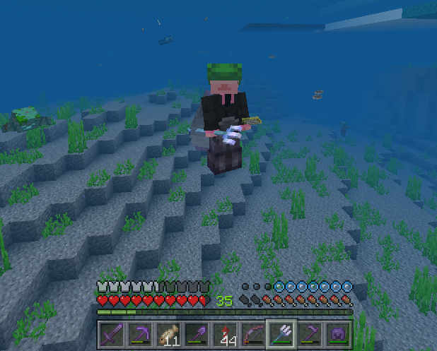 The turtle shell gives the breathing effect when the player is out of the water and when entering the water the effect is removed.