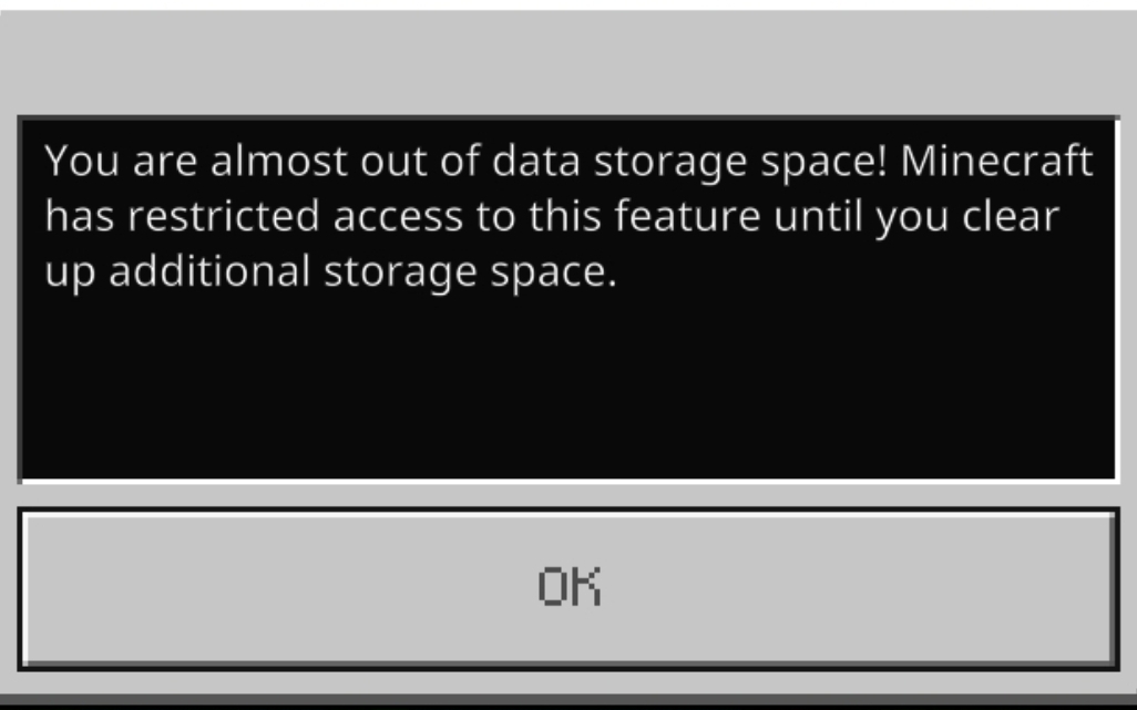 I keep getting kicked out of my world and getting this pop up (see image). I've cleared out so much storage from my PS4 and Minecraft by removing screenshots, clearing my PS4 and Marketplace cache, deleted as many old worlds and template. I have over 500 gigabytes of storage on my PS4 and 1 world on my account. This issue has been reported and said it was solved, but I am experiencing it now.