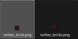 As you can see below, game files now have two Nether Bricks & Red Nether Bricks textures but only the older one is used because of the name issue.