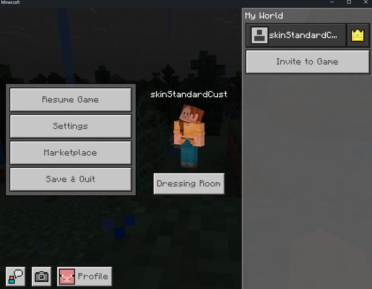 When you launch Minecraft bedrock and enter a world and press enter the words skinStandardcust can be seen when on escape interface.