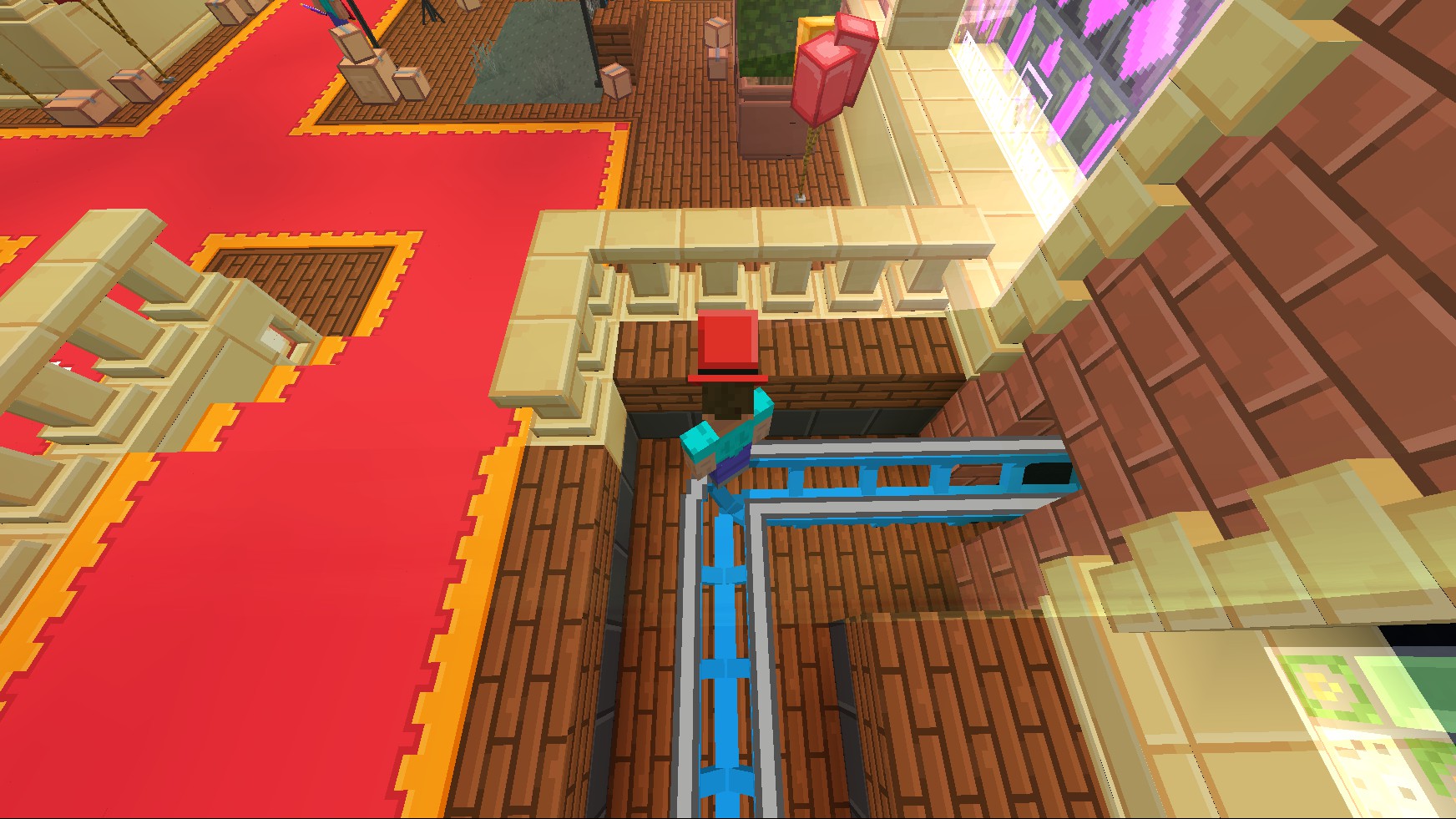 Go up to the end of the ride, then dismount the minecart. Be careful not to get trapped in a nearby hole!
