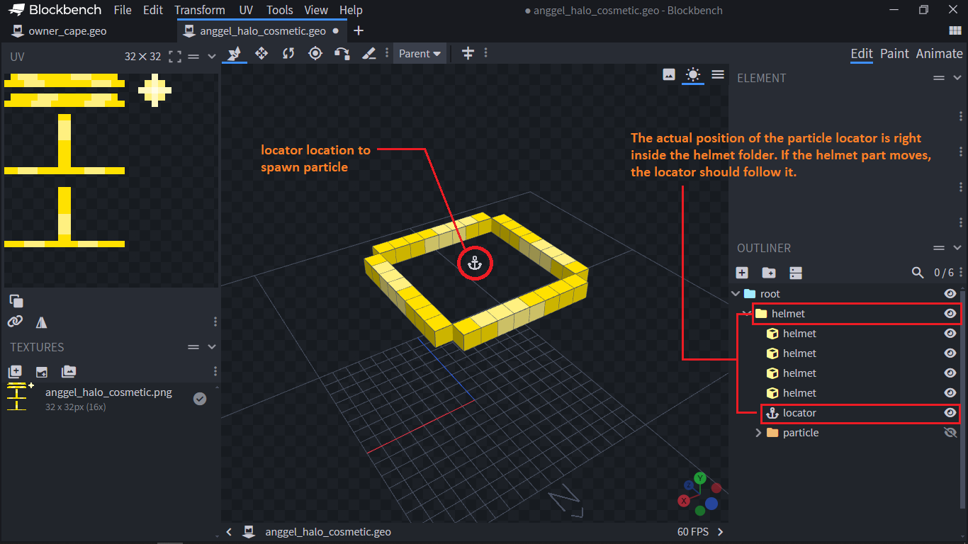 the steps on how I made it, I started from blockbench using "Minecraft Item Wizard" I took the preset helmet part because I wanted to create a custom cosmetic on the player's head, namely angel halo with rotating animation.