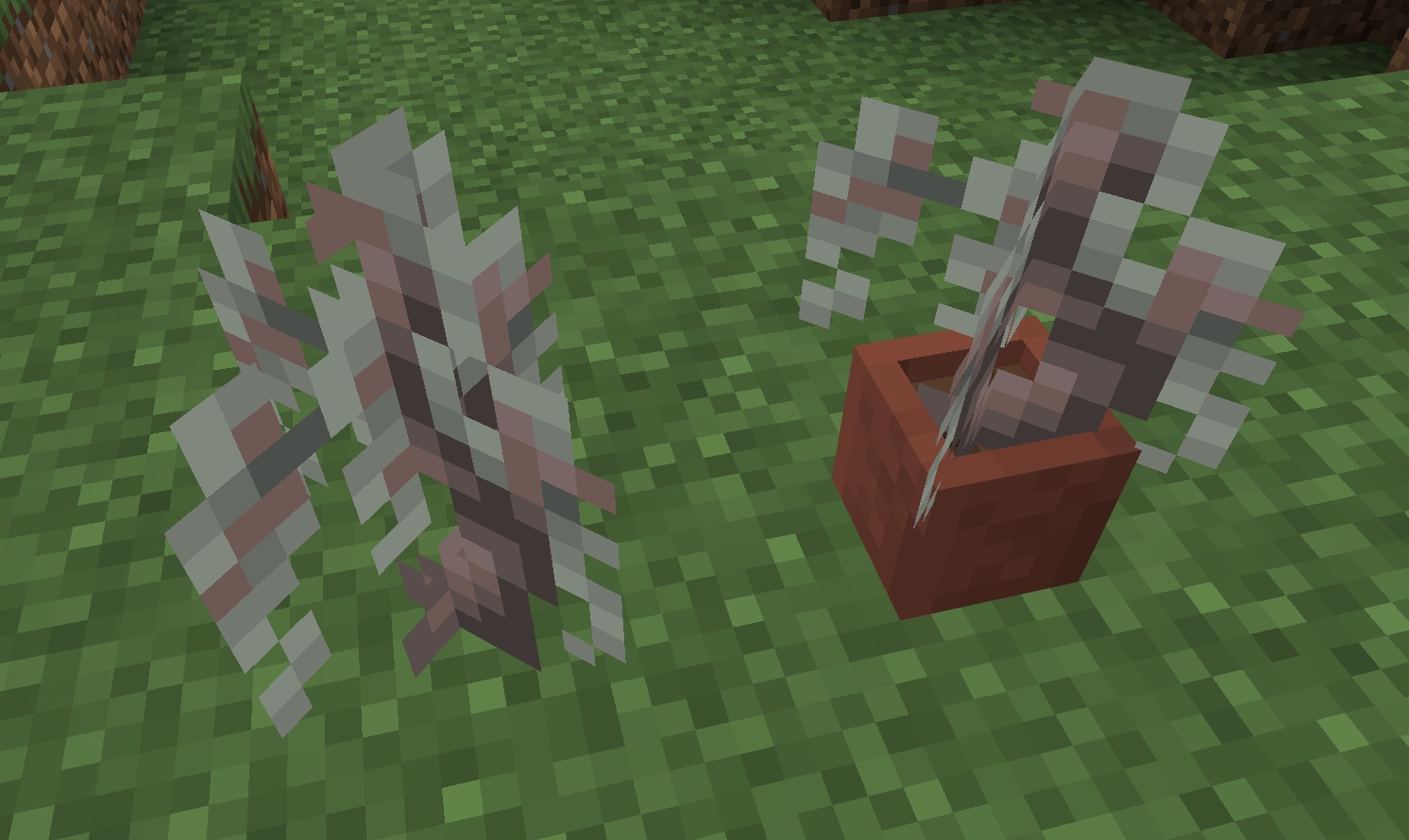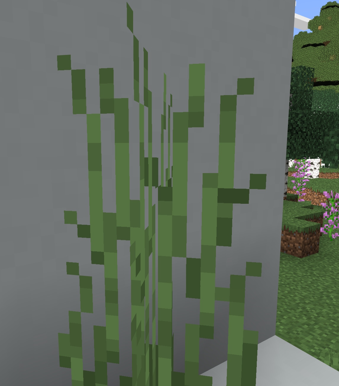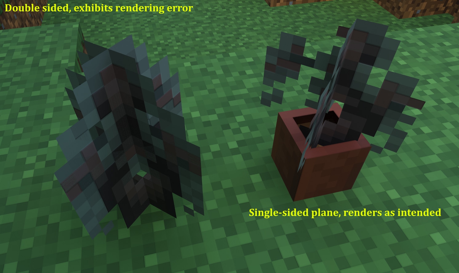 The new double-sided model is being used for more and more cross-shaped plane blocks in vanilla game to address the issue with textures appearing mirrored in the vanilla game