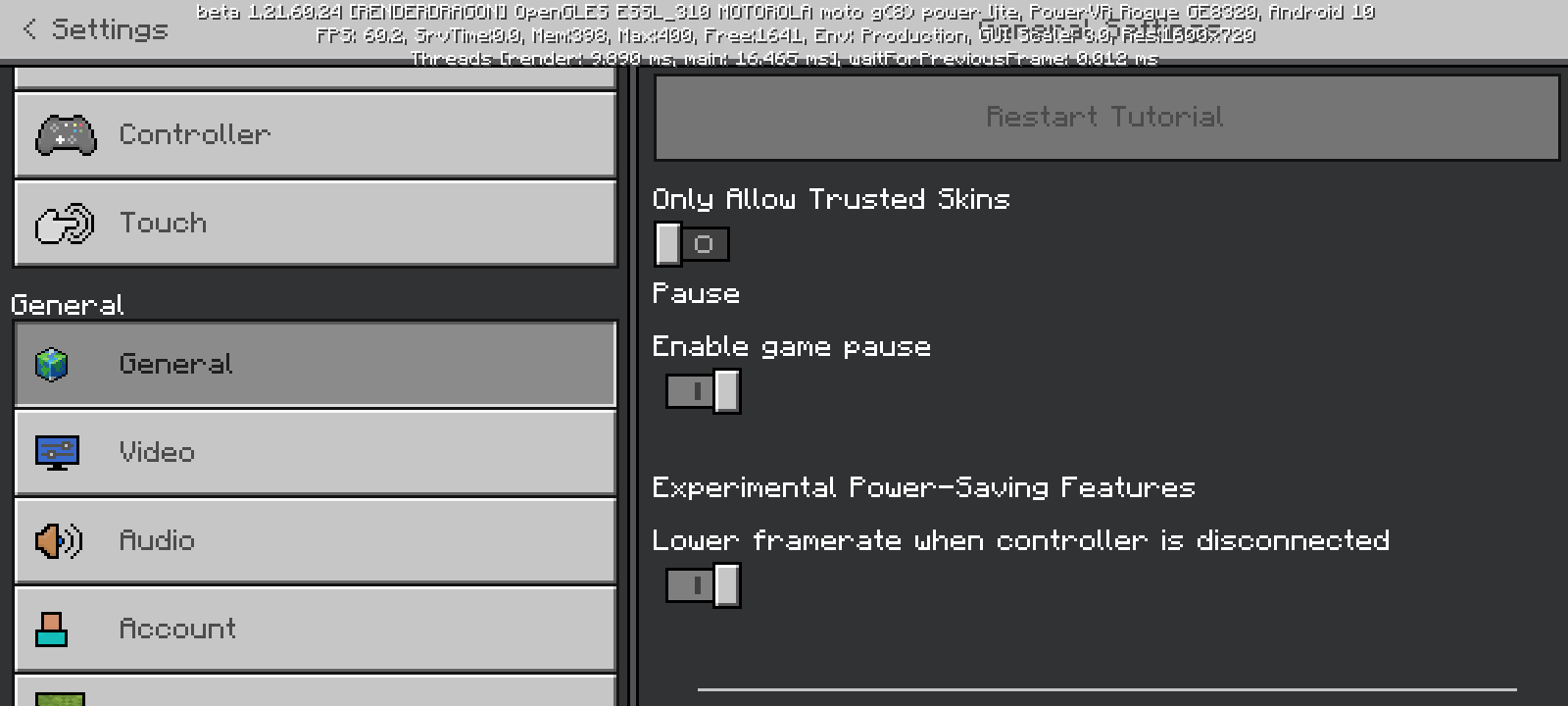 In Betas/Previews like "1.21.60.24" the game could be completely paused as part of the new feature added in "1.21.60.21". However, in the recent Beta/Preview "1.21.60.25", The game cannot be paused because the game pause function does not appear in the "General" section of the game settings.