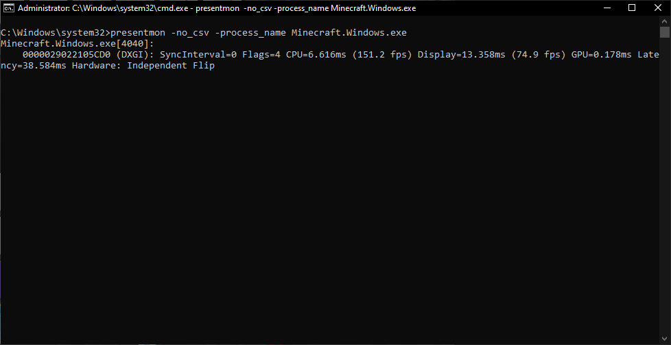 presentmon.exe -no_csv -process_name Minecraft.Windows.exepresentmon.exe -no_csv -process_name Minecraft.Windows.exeMinecraft: Bedrock Edition internally calls the function as follows: