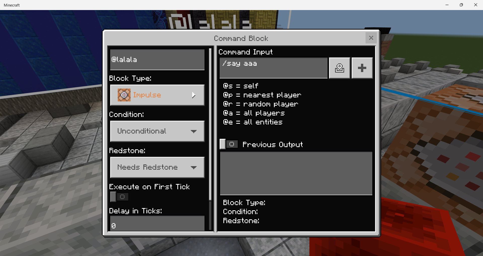 In the latest beta preview, when I try run command like /say with hover note, hover note replaces with [@].