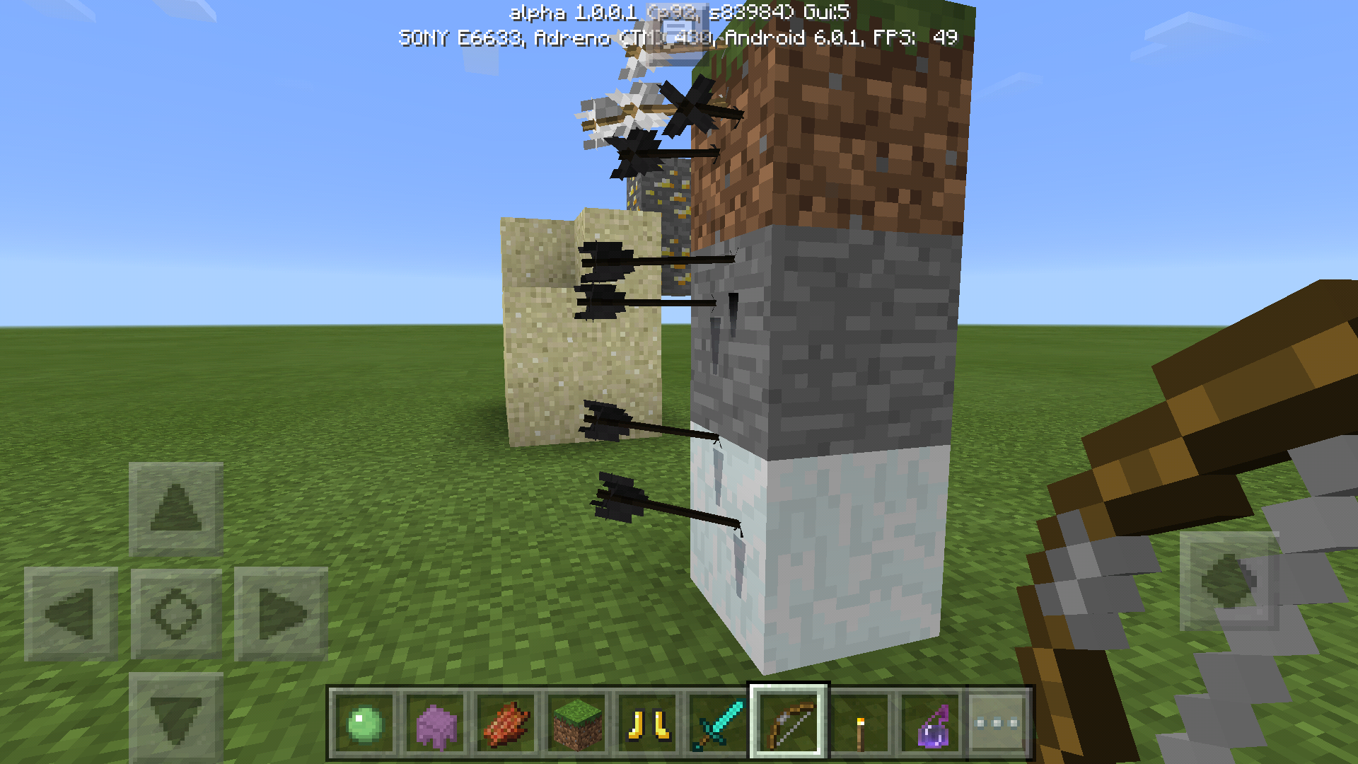 The arrows turn black when they hit a block and stick on it when I pull the bow to its maximum then release it. They also give a weird looking shadow.