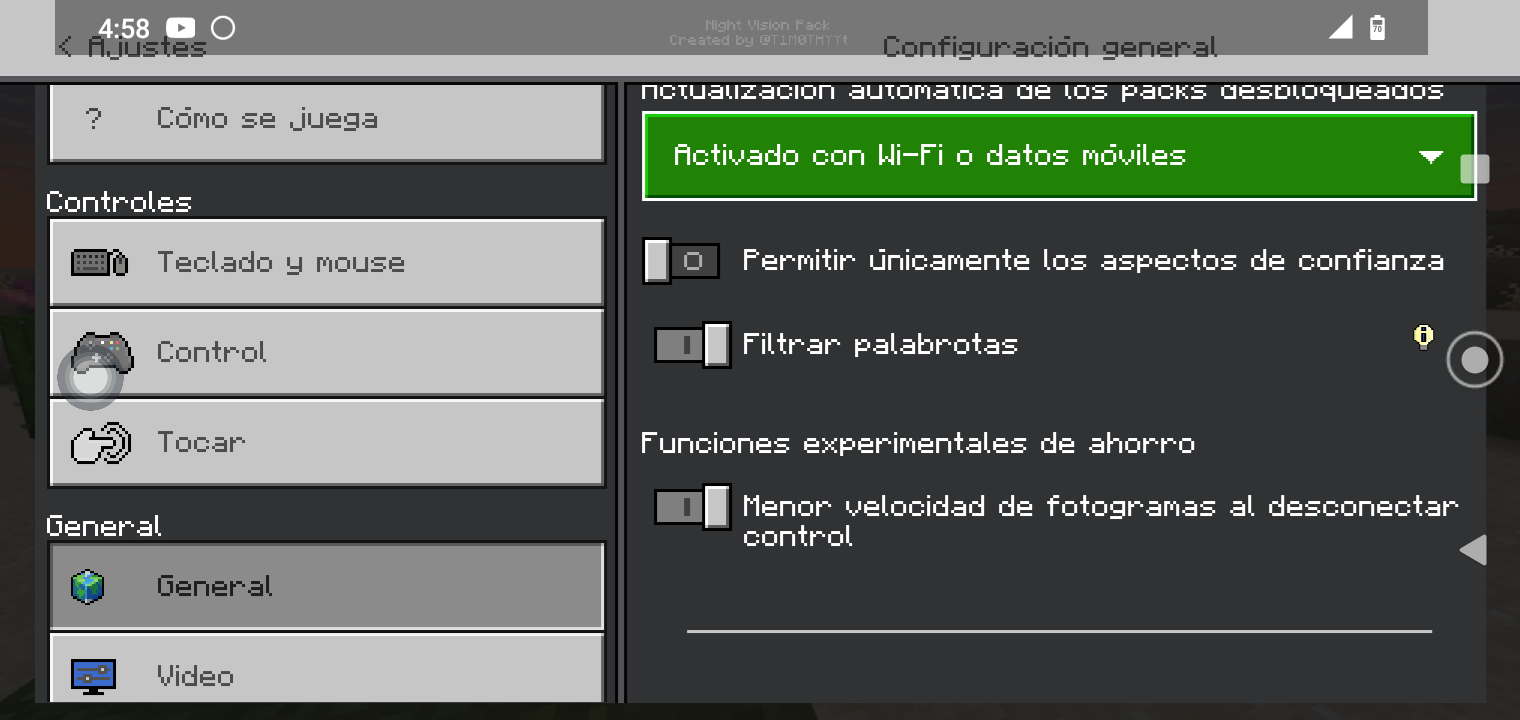 4. Go to the general settings. Once you do this, the option to pause the game disappears and becomes disabled.