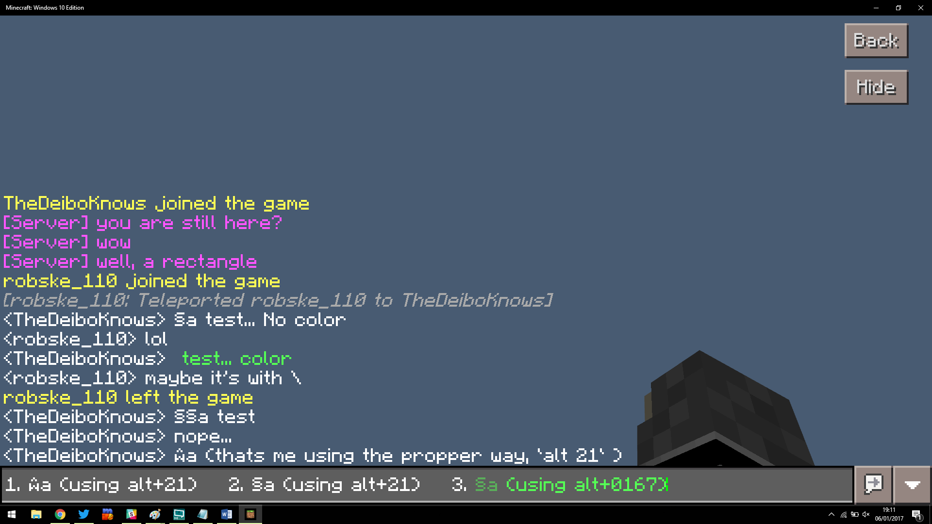 But, when I use "ALT + 25" in game I get "§", but it doesn't allow the color to work.