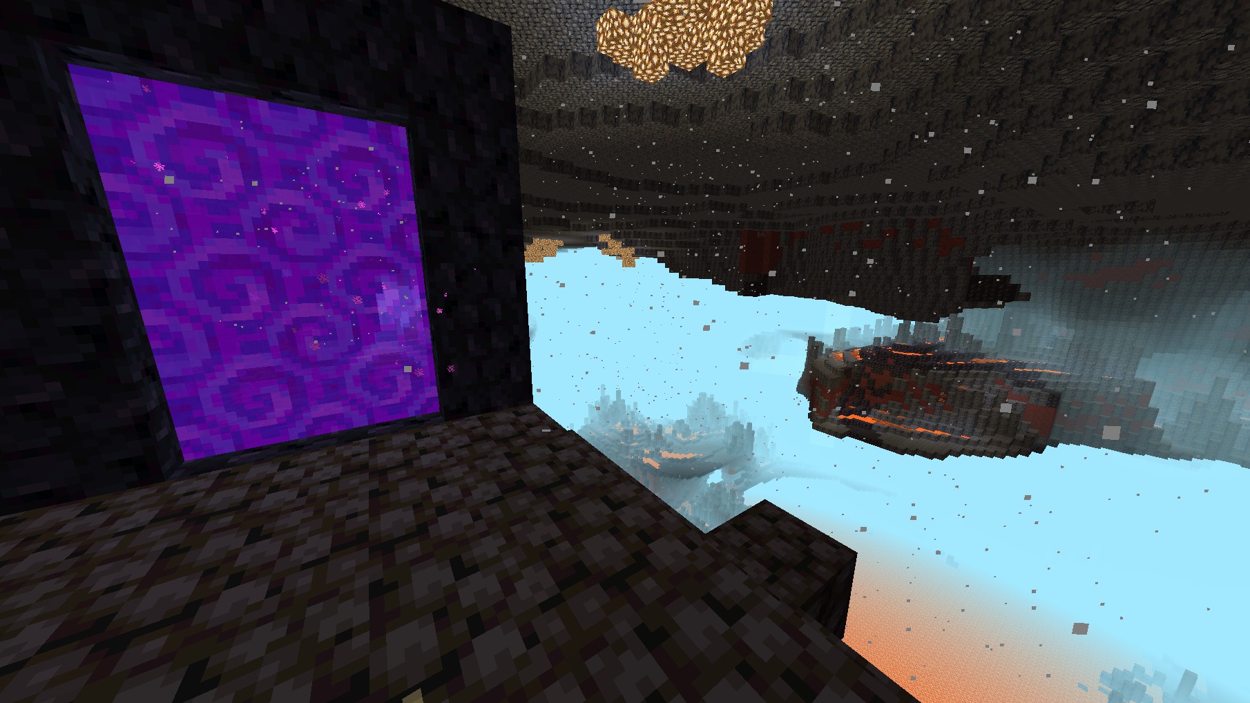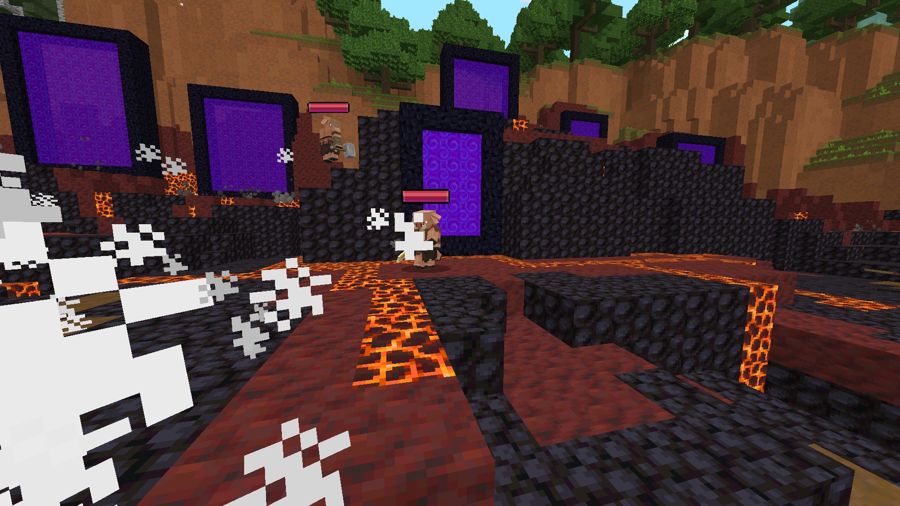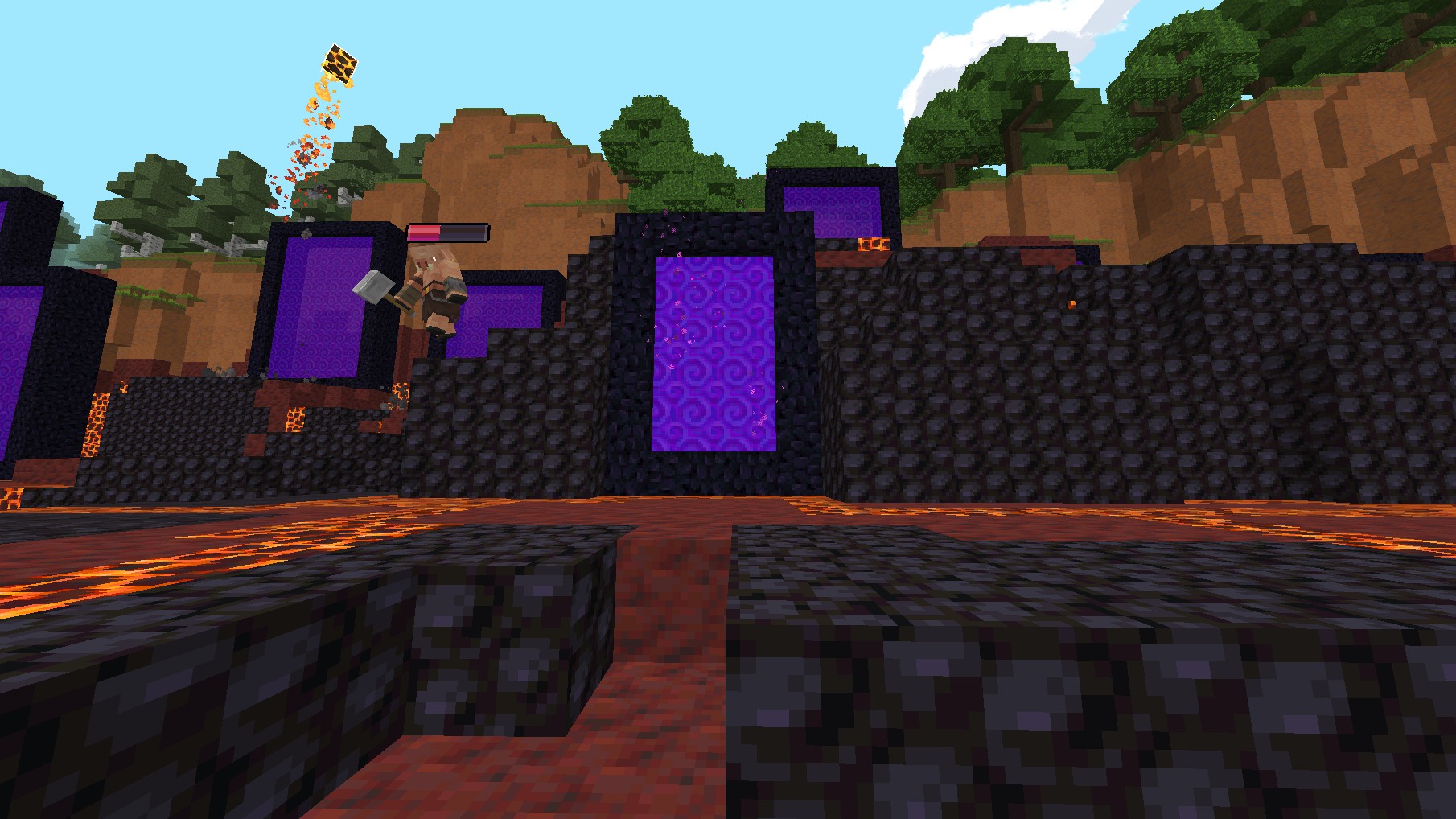 When you enter in some of the portals (hes kinda more pinkish than the others) in the walls ext. at the new minecraft event, you really get in to the nether, that you can explore and whatever, since theres some nether structures.