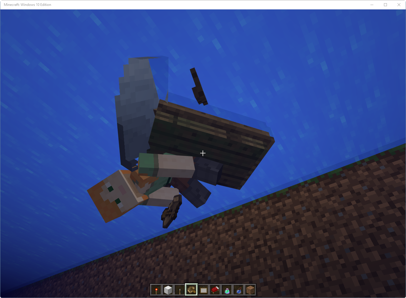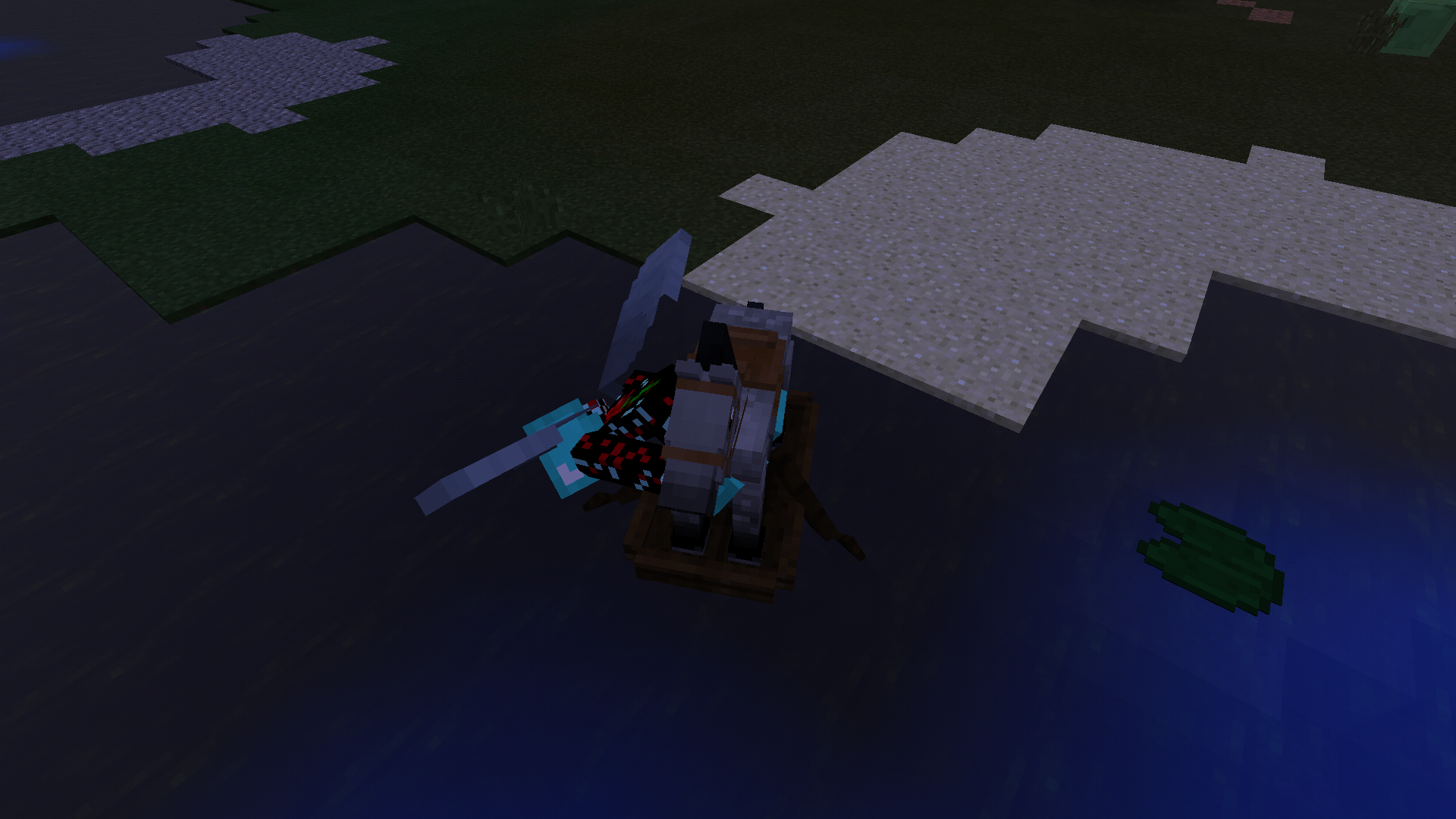 If you mount a vehicle or animal when flying with Elytra, the players model remains in the flight position, instead of cancelling the elytra flight.