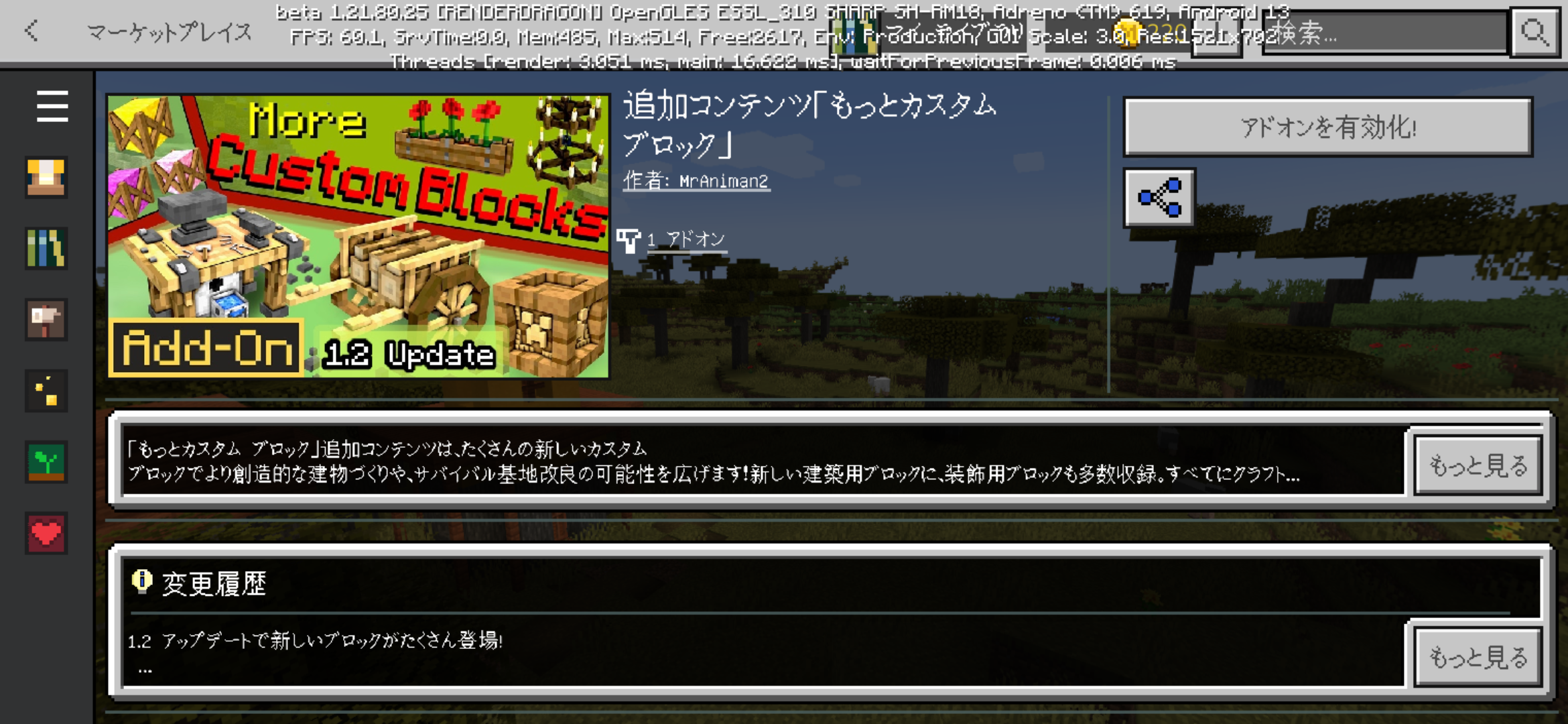 言語の関係で伝わるか分かりませんが、私の端末では画像のaddonを入れた場合に報告されたバグと同様の症状が出ています。addonを入れていない場合は症状は出ませんでした。端末はAndroidのスマートフォンでバージョンはベータ版の最新バージョンです。アイテム欄やインベントリでは表示されませんが、ブロックやアイテムとして設置すれば見える状態です。