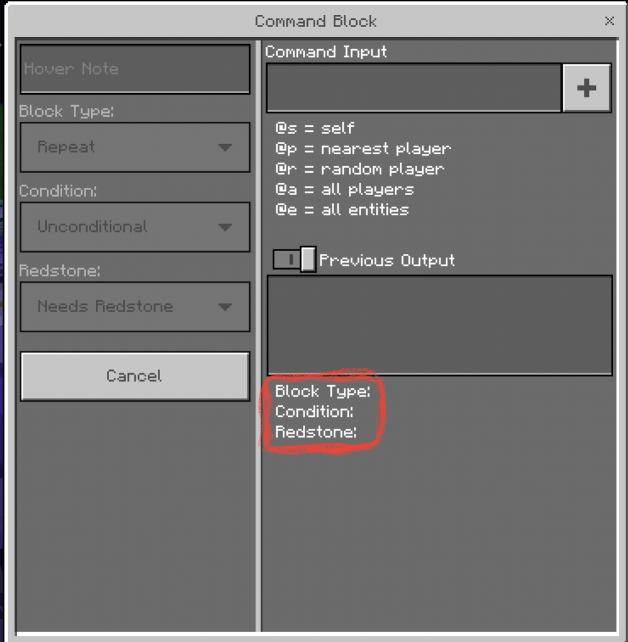 On the command block on the bottom it is written mostly the wrong description.like on the image there is a repeating command block but on the description its written a impulse command block.