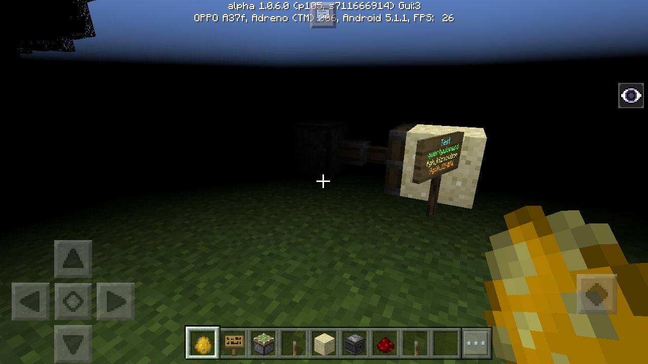 You can see moving blocks and colored text behind the visible area when applied with blindness effect.