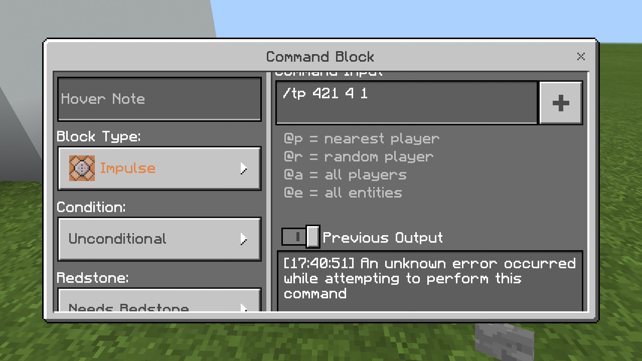 Put the playername, @p or @a after the tp. Then it should work, but also that is not a bug. You just used the wrong syntax for the command.