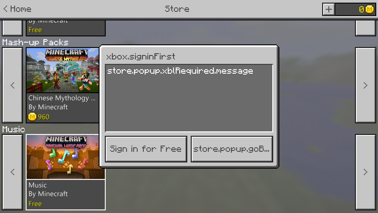 Right after I clicked on the pack, it showed a pop-up called 'xbox.signinFirst' and the messages.