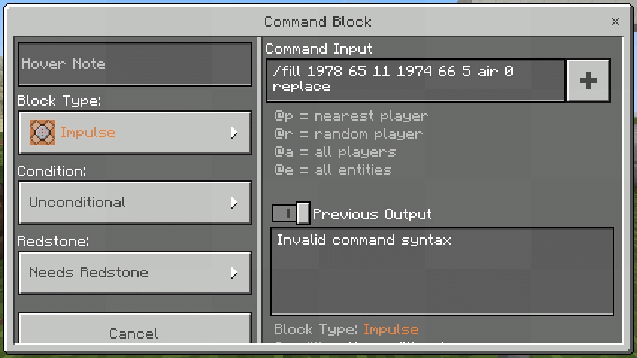 Same error on my iPhone 7. Which is sad since I'm a creative builder and the commands make it so much easier when working on big projects.