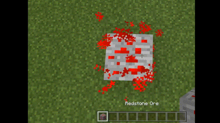 replicate: stand on a redstone ore block then jump to place another redstone ore block in top of the first redstone ore block.