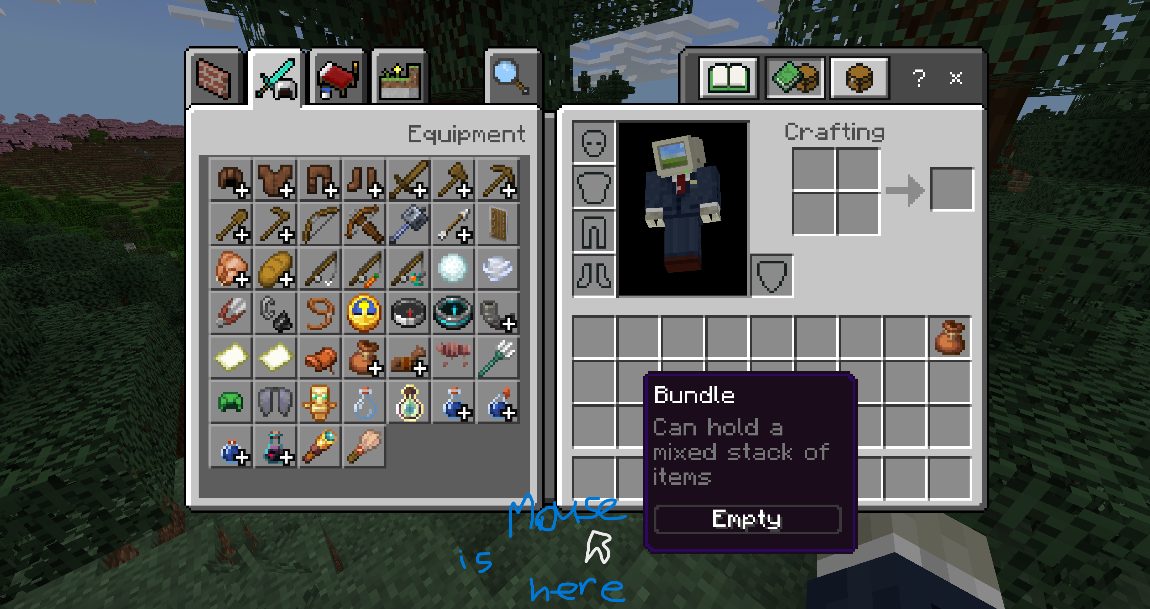 When the bundle is next to the border of the inventory and the mouse pointer goes off the item into the space behind the inventory, the text describing it does not disappear.