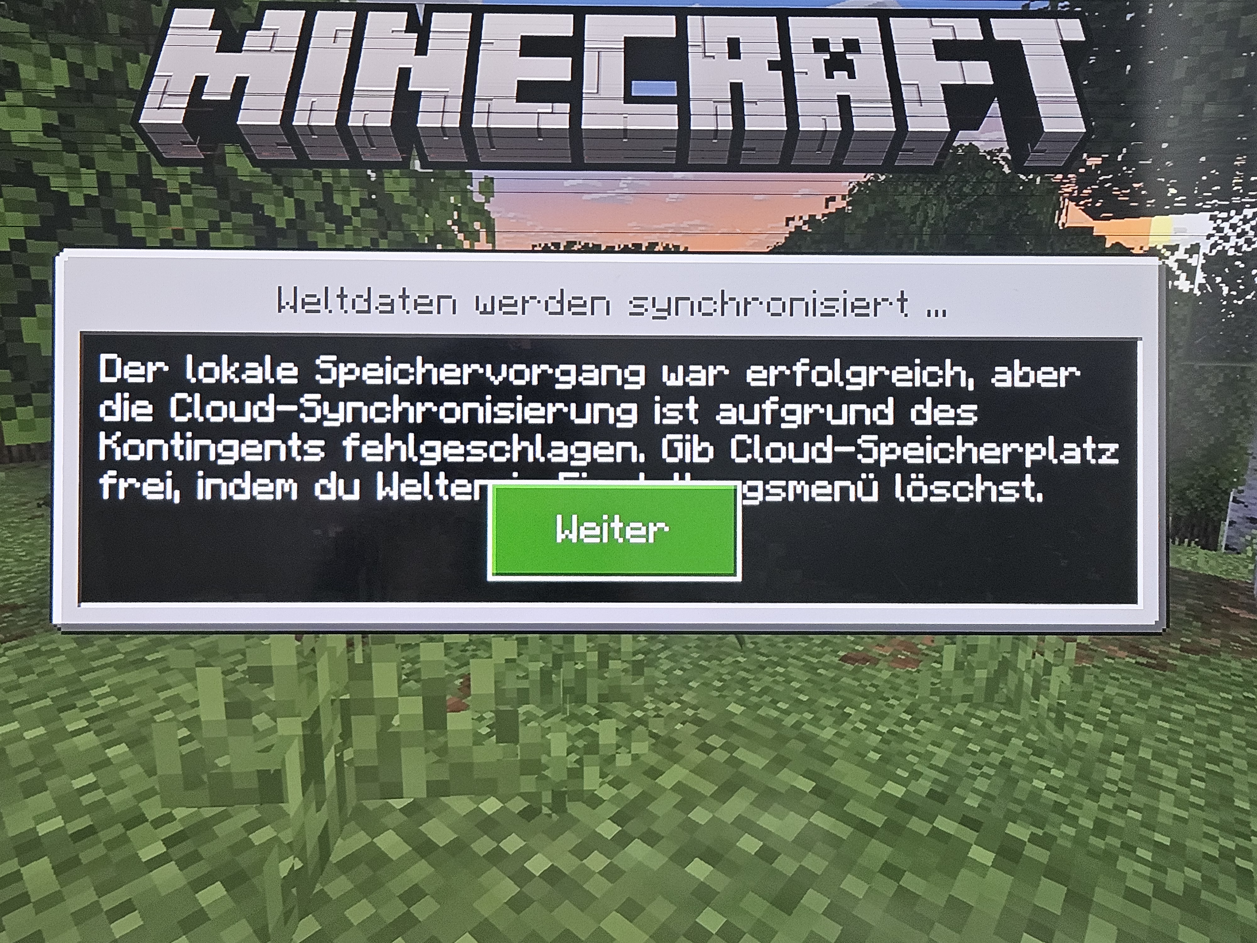 When I leave my world, it says that the local storage process was successful, but cloud synchronization failed due to a "contingency" or something idk what that means but the point is i have 500gb of storage and i have 5 worlds so i cant be full storage